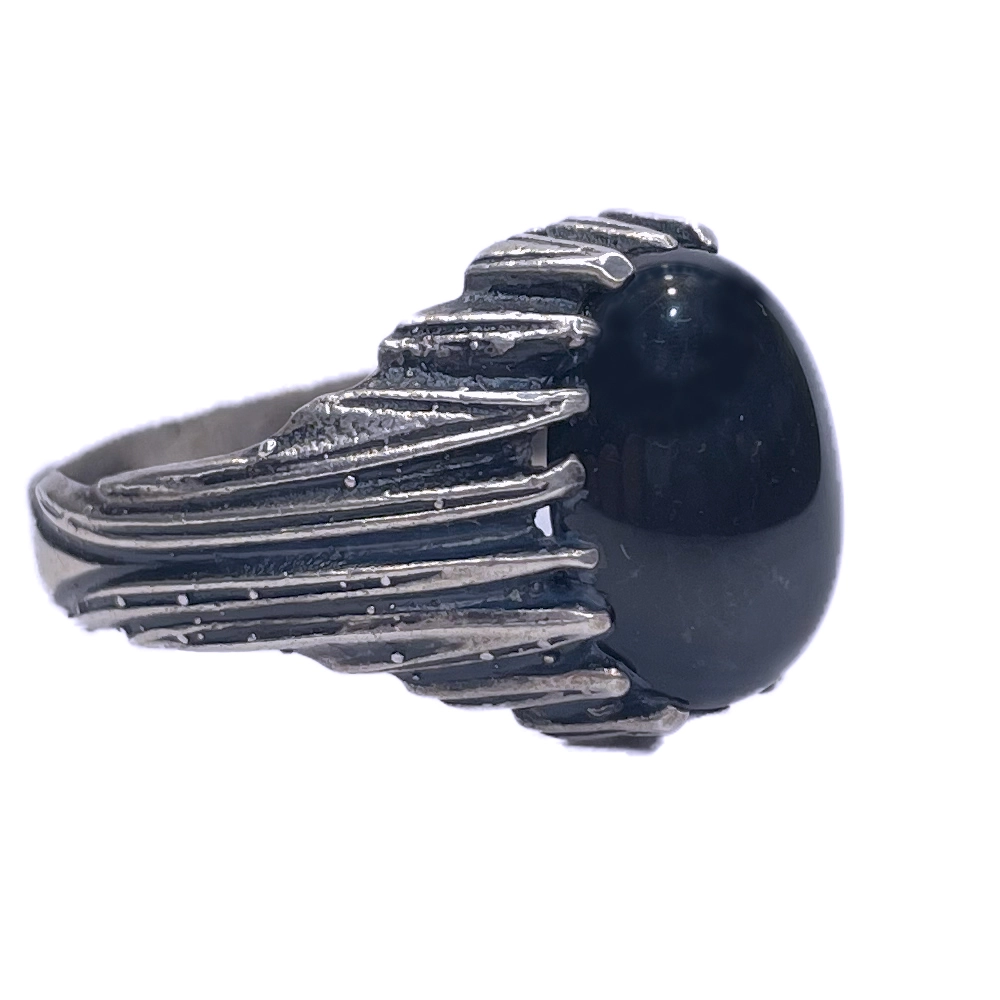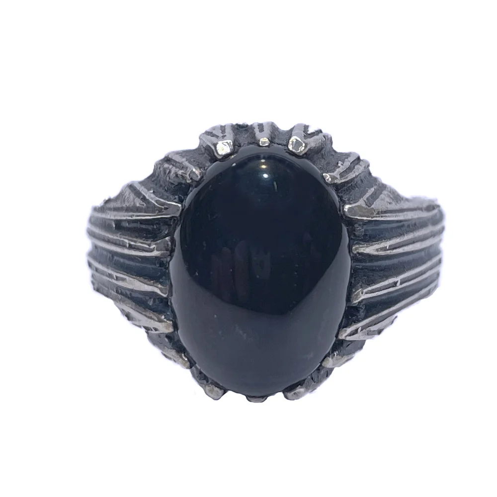 انگشتر مردانه نقره همراه با سنگ عقیق مشکی