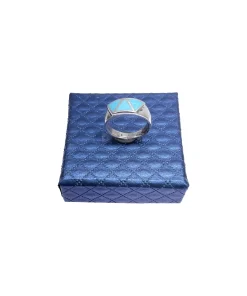 انگشتر زنانه نقره همراه مینا آبی و نگین های اتمی سفید بسیار زیبا و شیک با عیار ۹۲۵ می باشد این انگشتر سلیقه خاصی را میطلبد که فرم آن بسیار تک و جالب است این انگشتر به سبک مینیمال و ساده میباشد که زیبایی و شیکی آن در سادگی آن خلاصه میشود این انگشتر ساده و شیک پیشنهادی جذاب برای خانمهای خوش سلیقه و خاص پسند هست