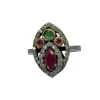 انگشتر نقره زنانه طرح عثمانی با نگین های سفید ریز اتمی و تخمه قرمز تراش اشک