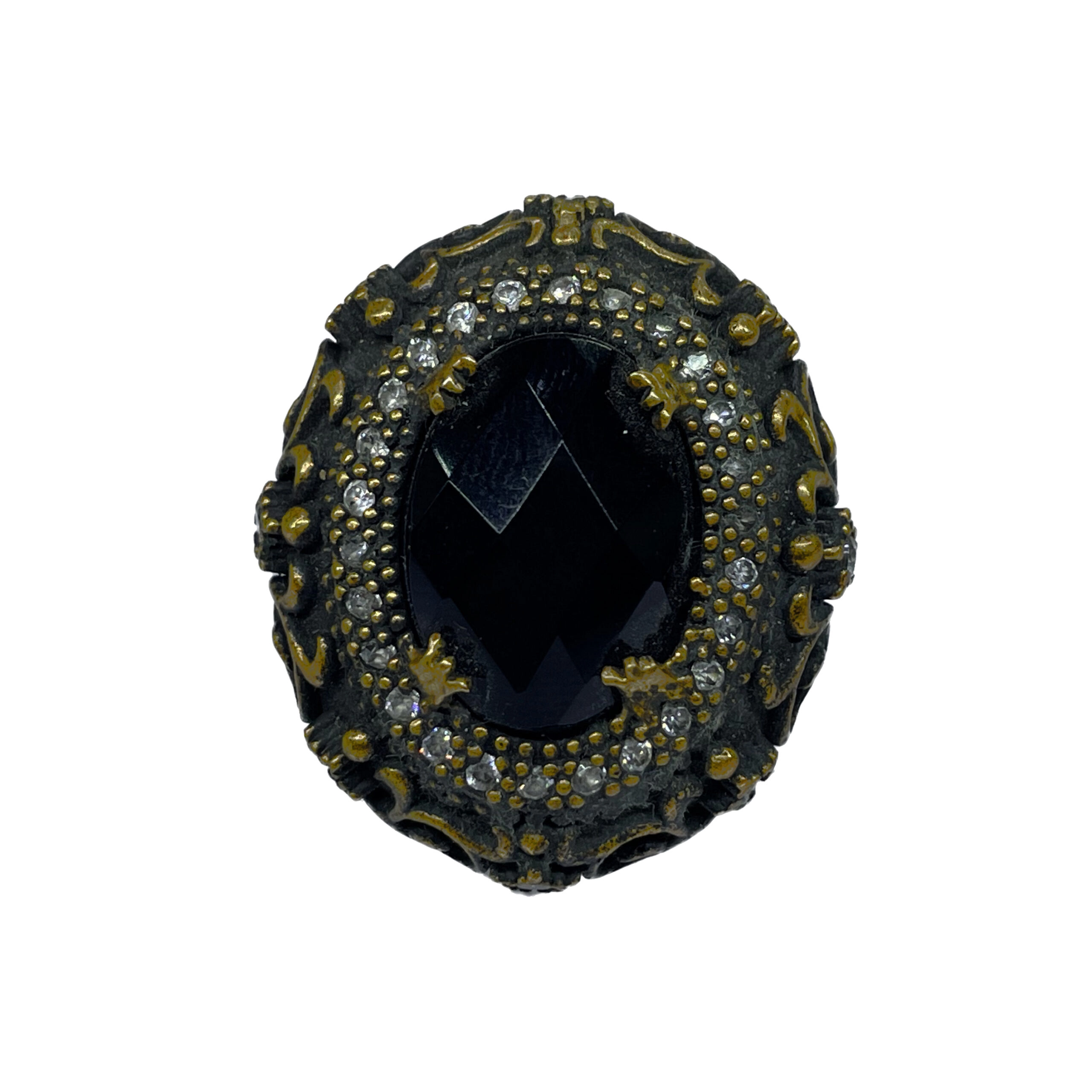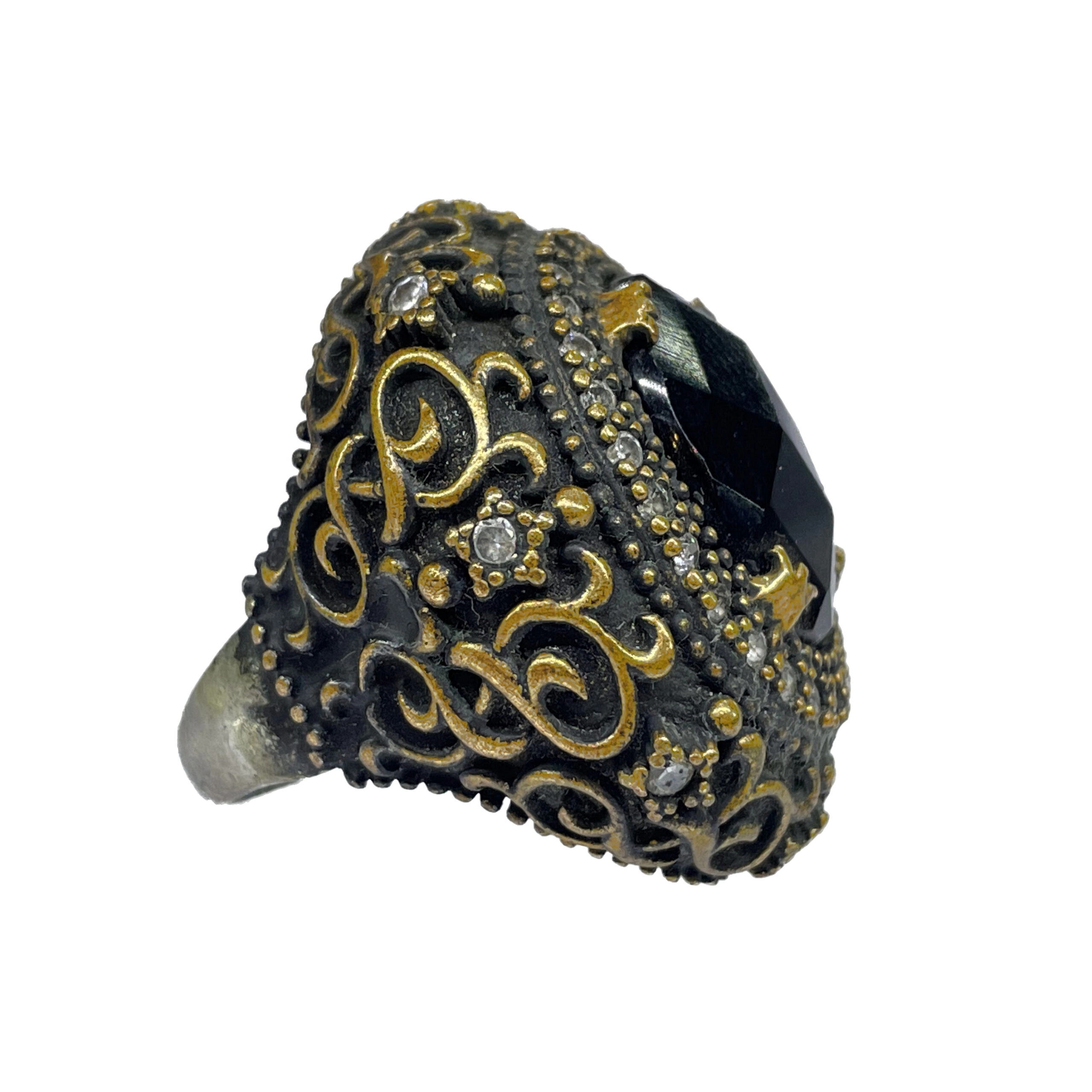 انگشتر نقره زنانه طرح عثمانی با نگین های سفید ریز اتمی و تخمه مشکی