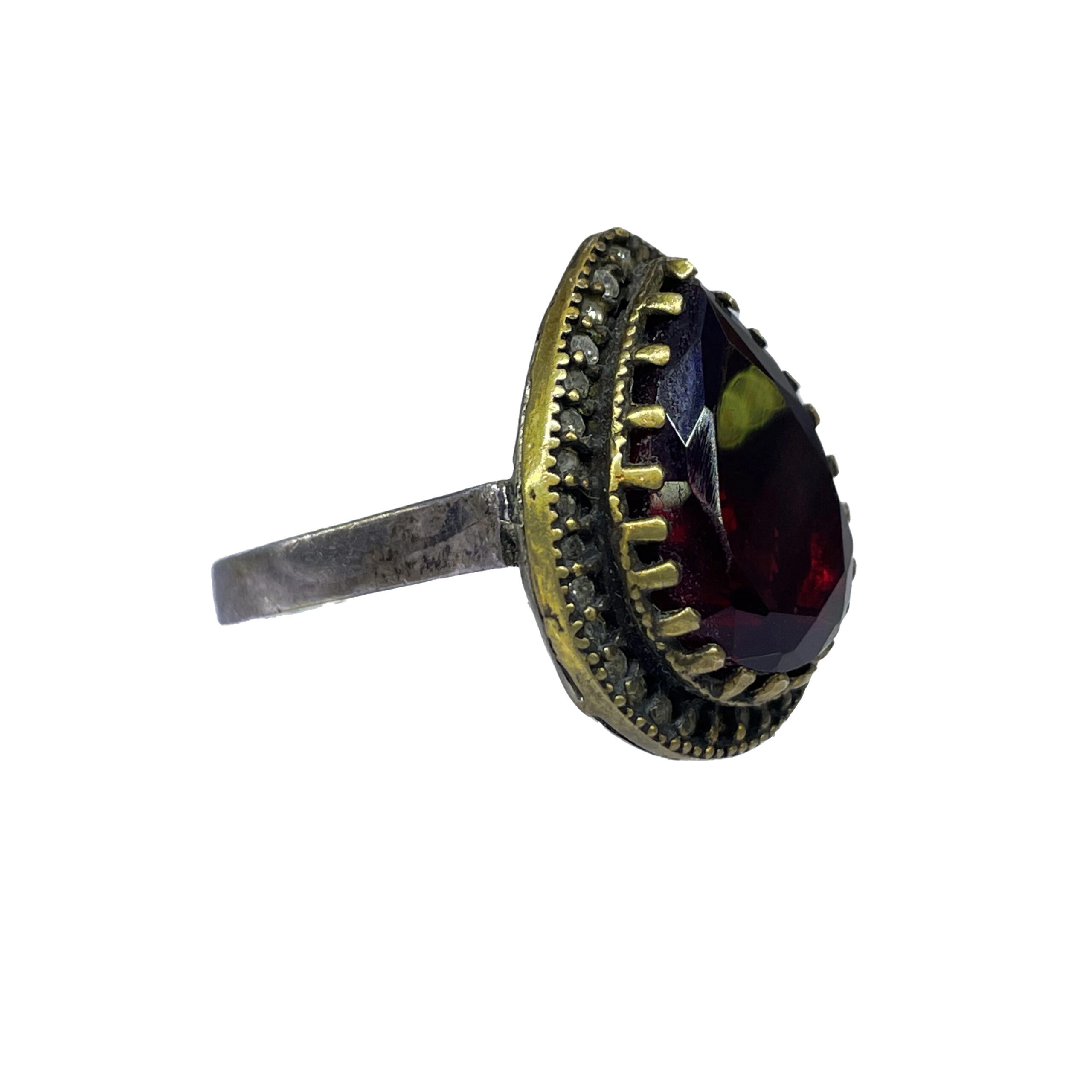 انگشتر نقره زنانه طرح عثمانی با نگین های سفید ریز اتمی و تخمه قرمز
