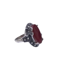 انگشتر نقره زنانه مارکازیت با سنگ عقیق قهوه ای