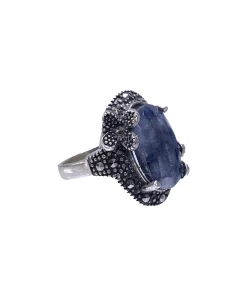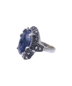 انگشتر نقره زنانه مارکازیت با سنگ یاقوت کبود