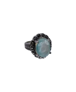 انگشتر نقره زنانه مارکازیت سنگ زمرد جیپسون