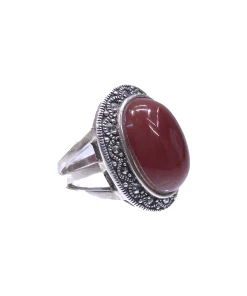 انگشتر نقره زنانه مارکازیت سنگ عقیق قهوه ای