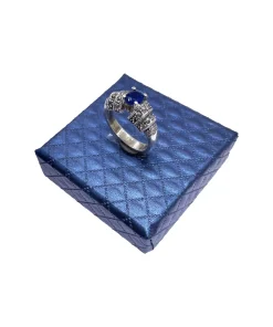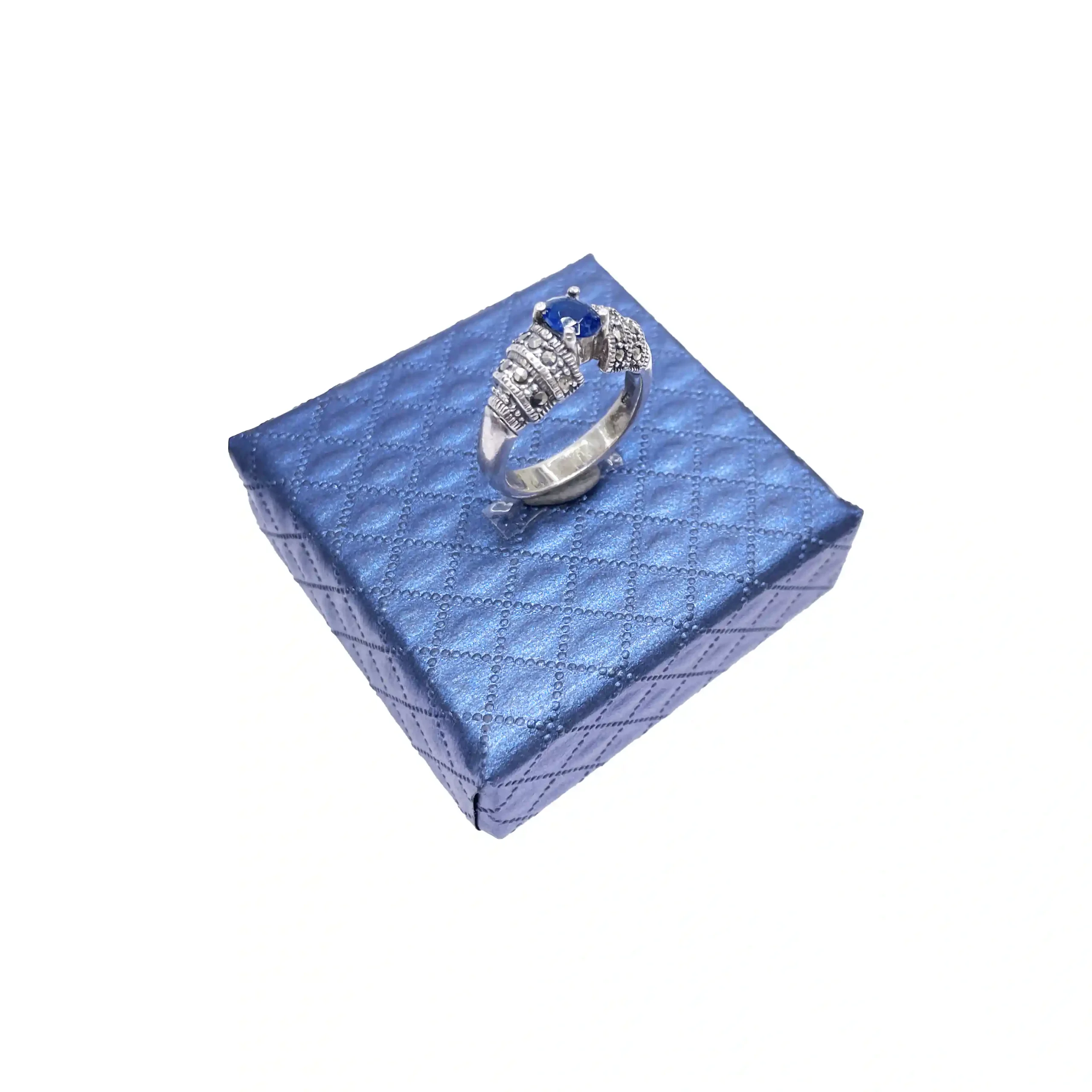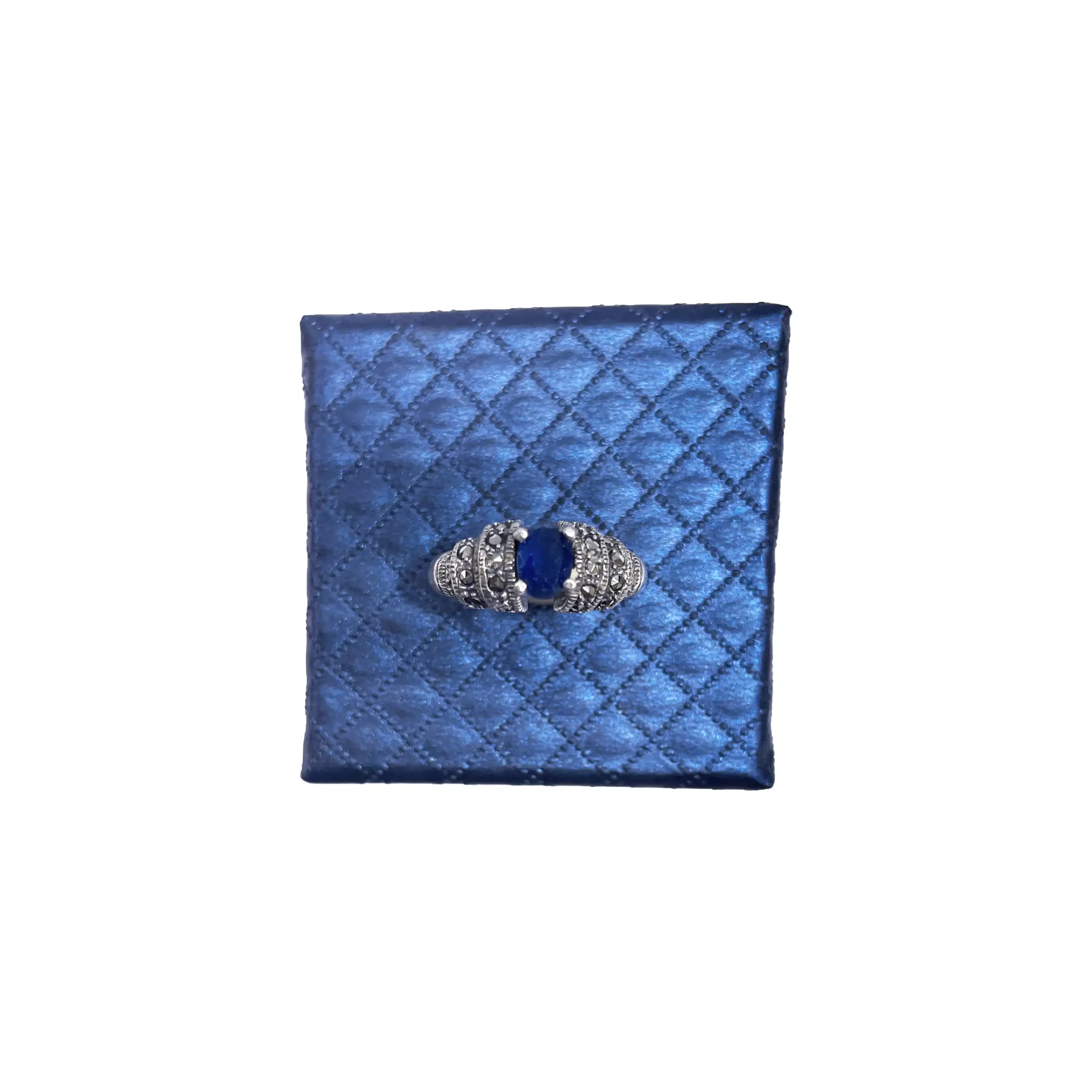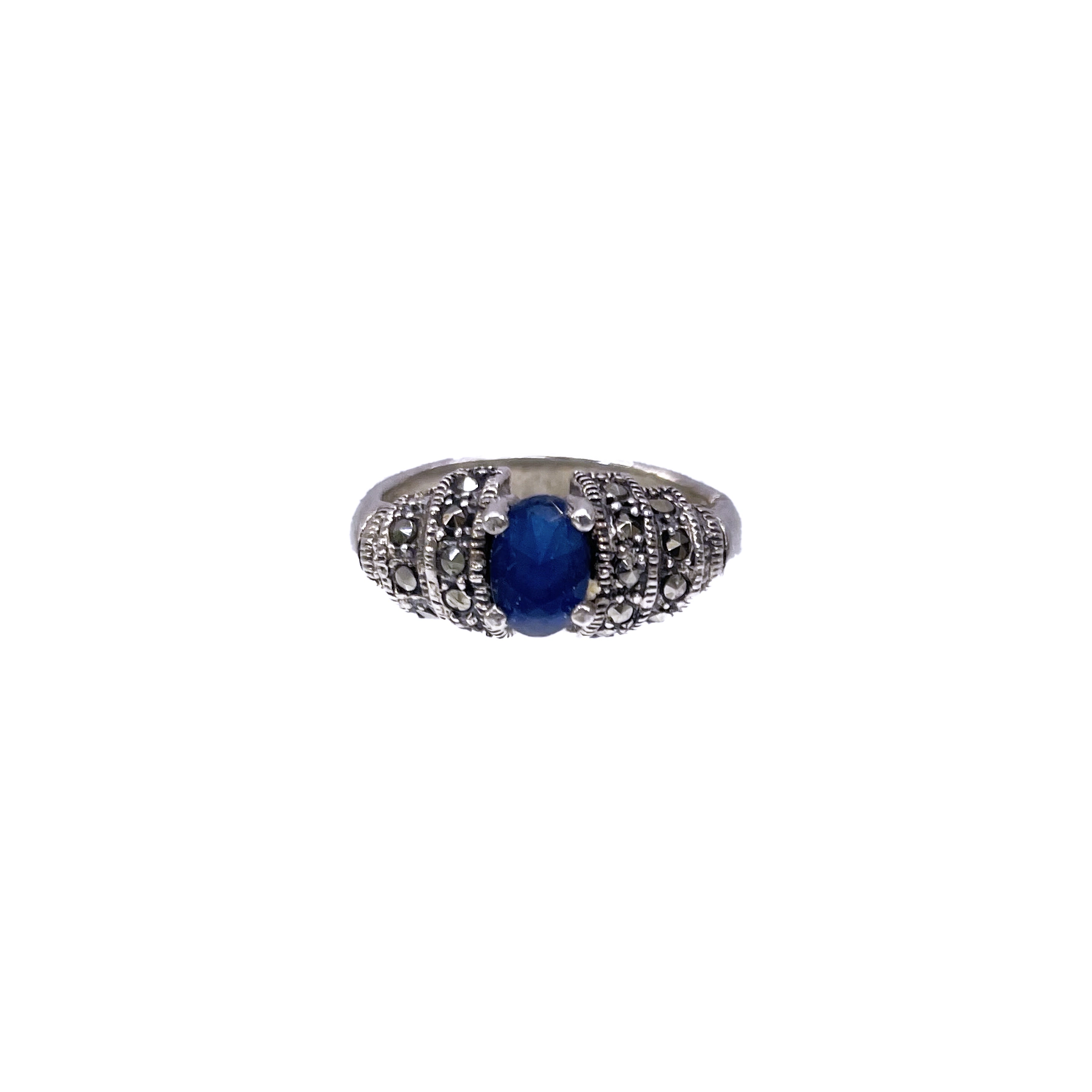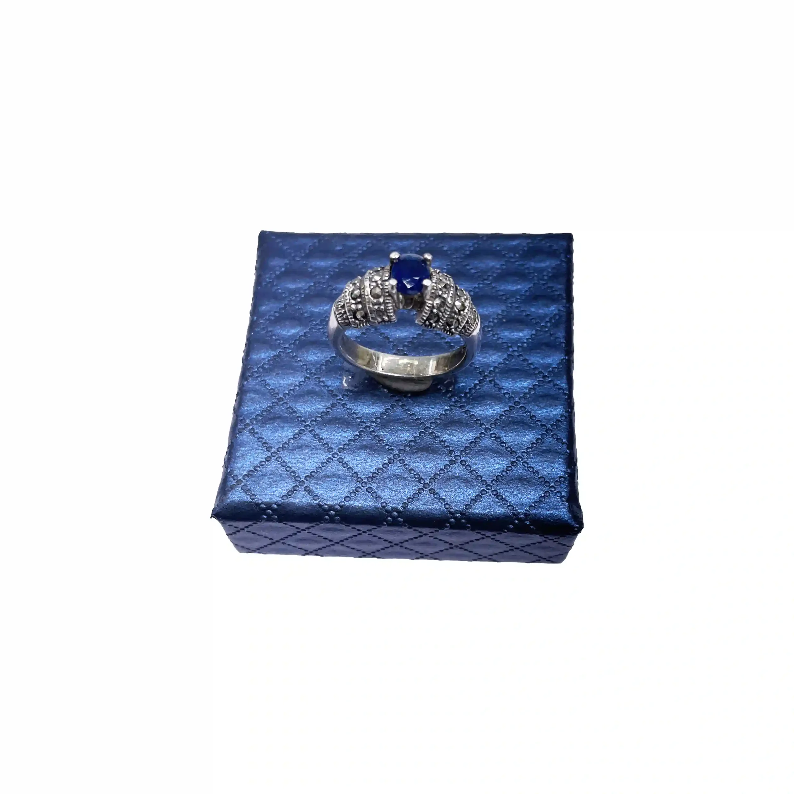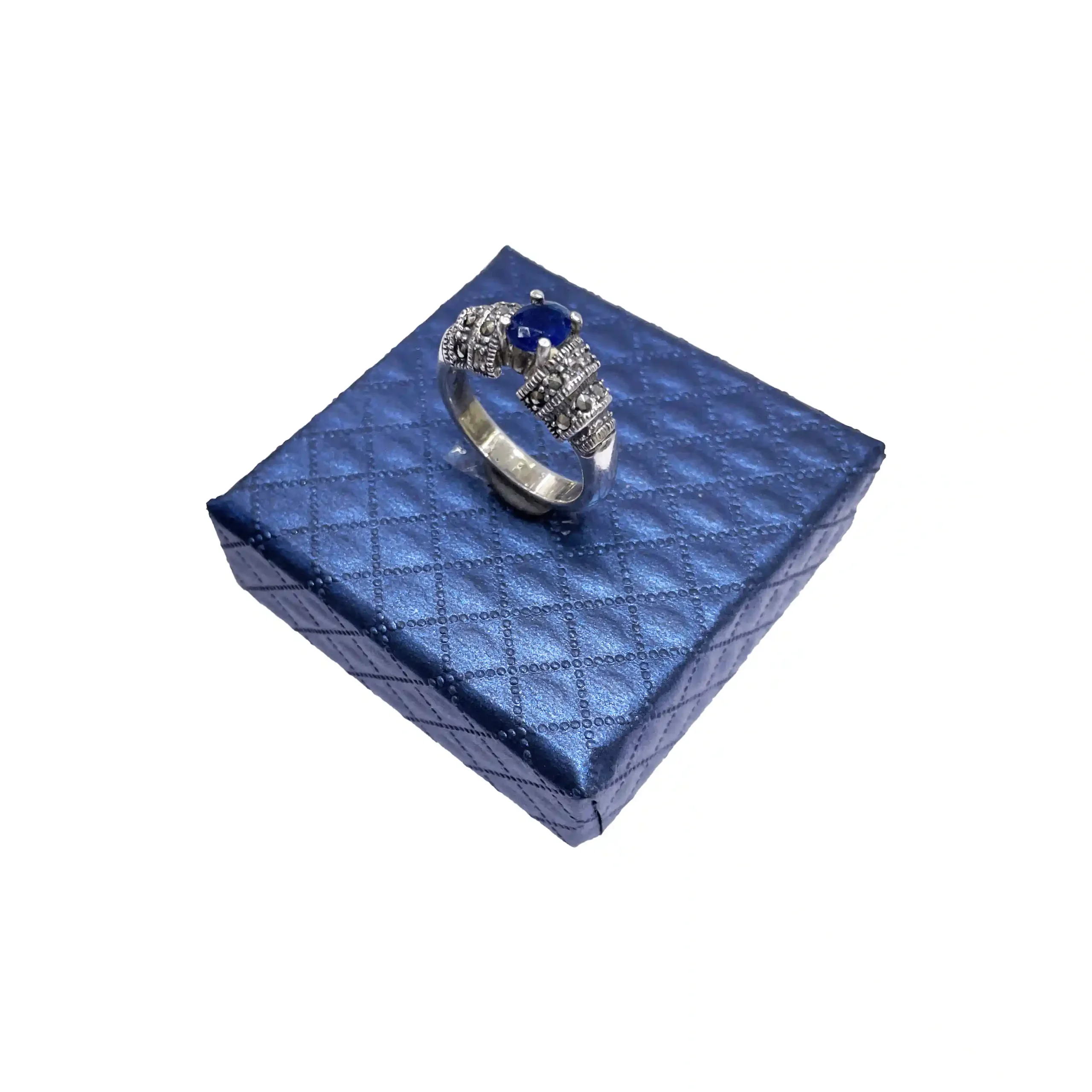 انگشتر نقره زنانه مارکازیت سیاه قلم همراه با سنگ آبی