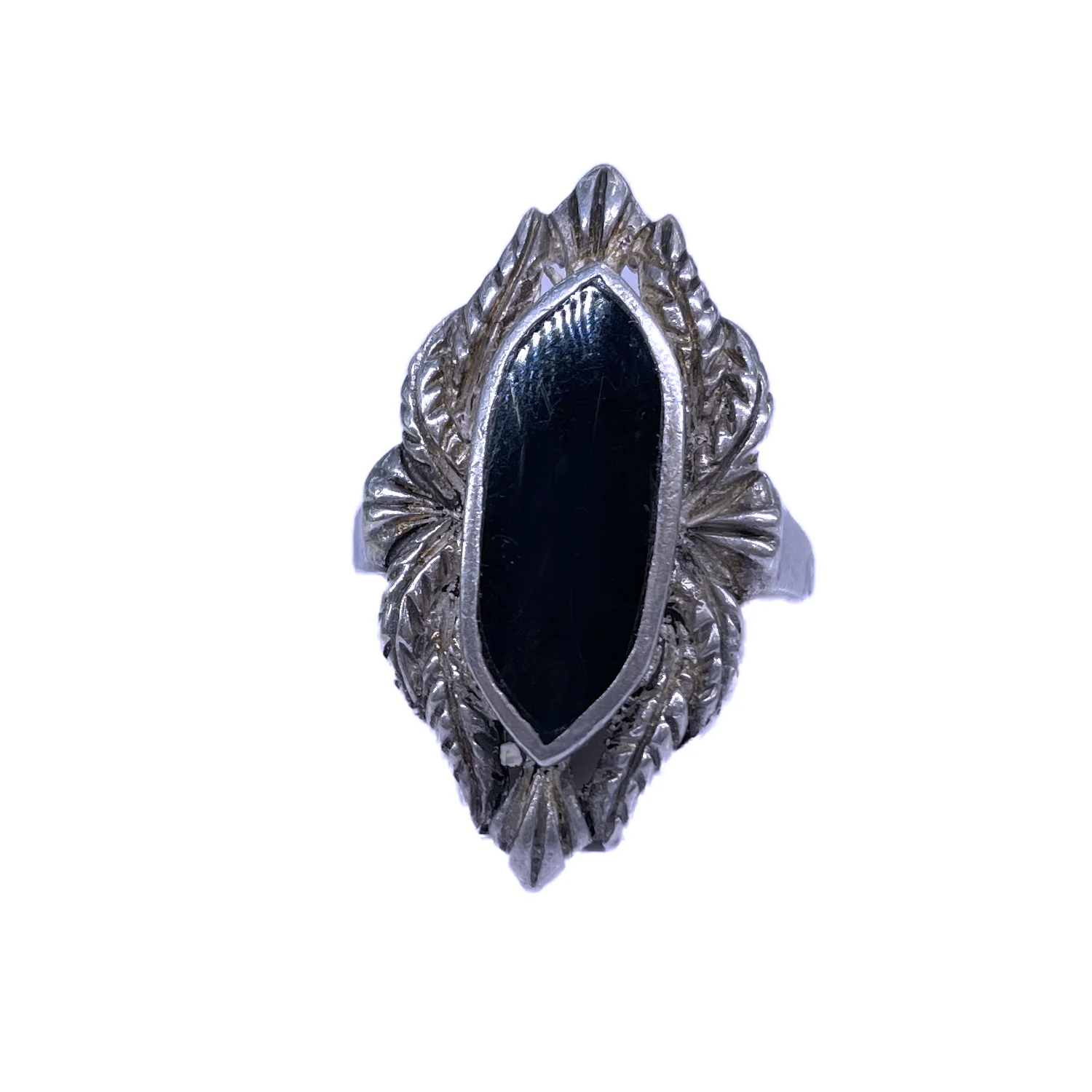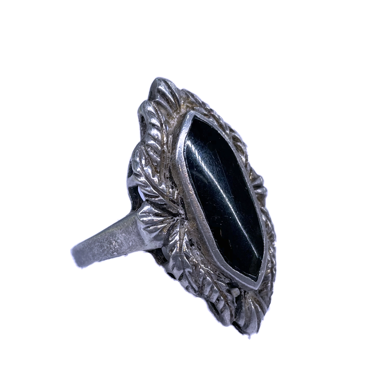 انگشتر زنانه نقره همراه با نگین اتمی سفید و مینای مشکی بسیار زیبا و شیک با عیار ۹۲۵ سایز 60 می باشد این انگشتر سلیقه خاصی را میطلبد که فرم آن بسیار تک و جالب است