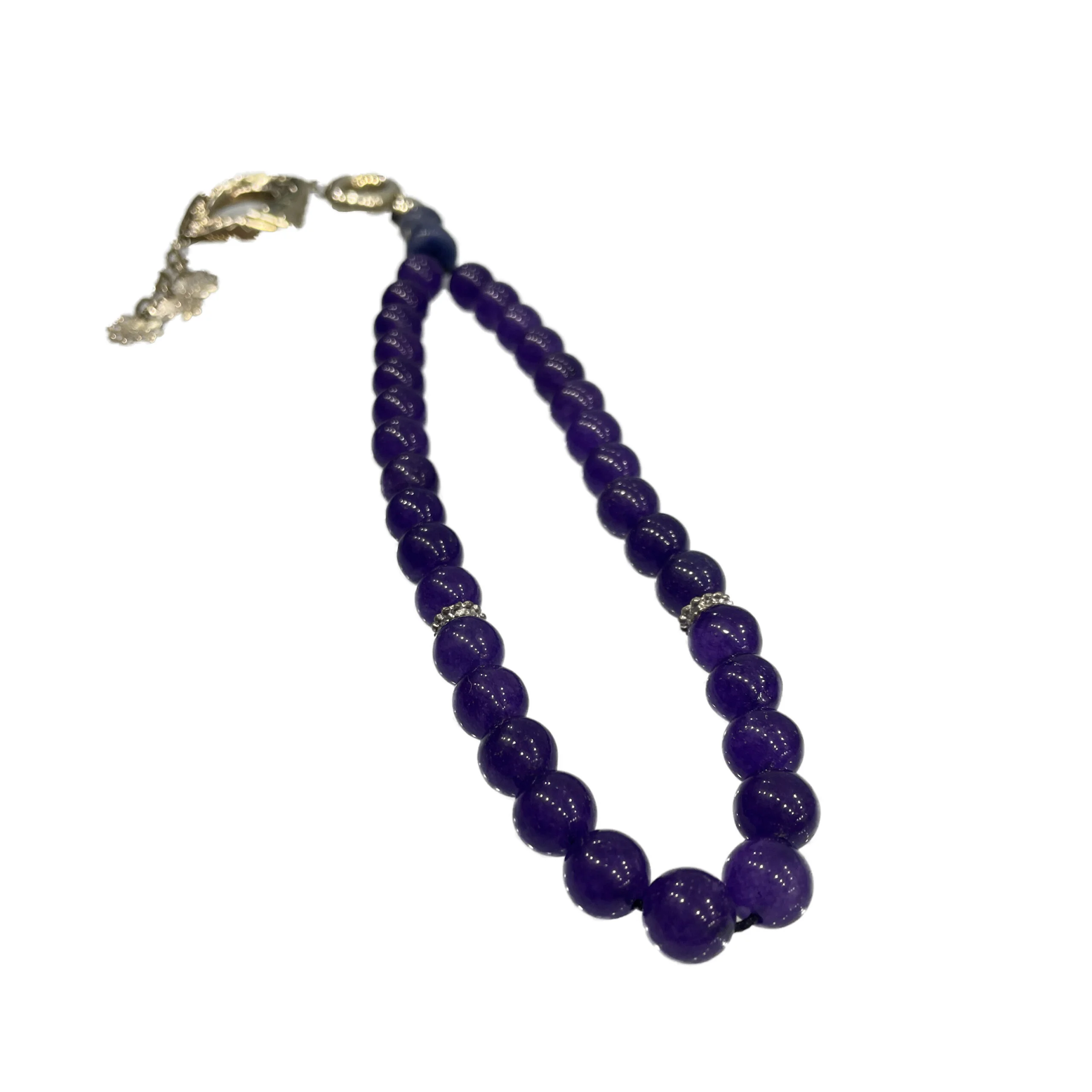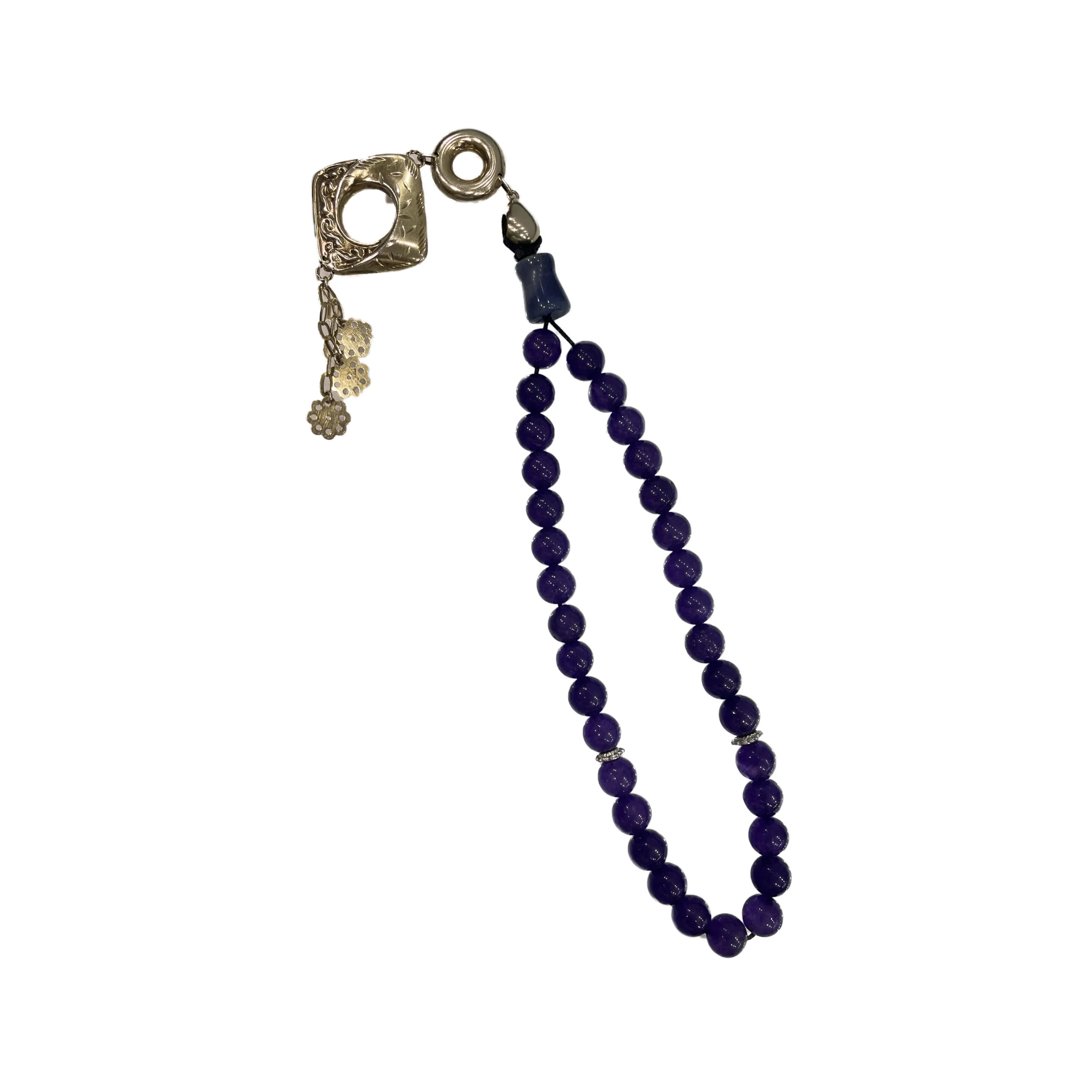 تسبیح نقره با سنگ آماتیس اصل به رنگ بنفش و عمامه نقره که بسیار زیبا و شیک بوده و دارای پرستیژ خاص و رنگ بینظیر و شیک است که آن را متمایز میکند تراش این تسبیح به صورت گرد میباشد و تعداد آن ۳۳ عدد است و در ساخت آن نخ بسیار محکم برای استفاده به کار رفته است