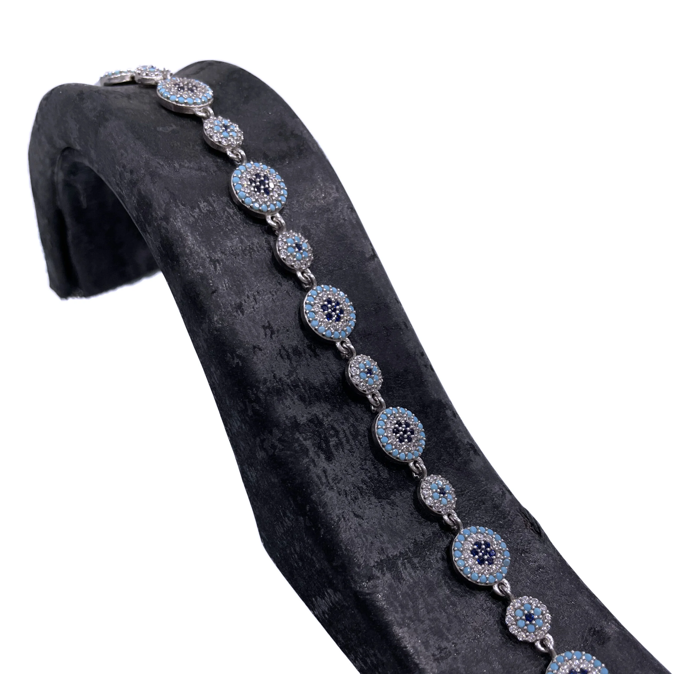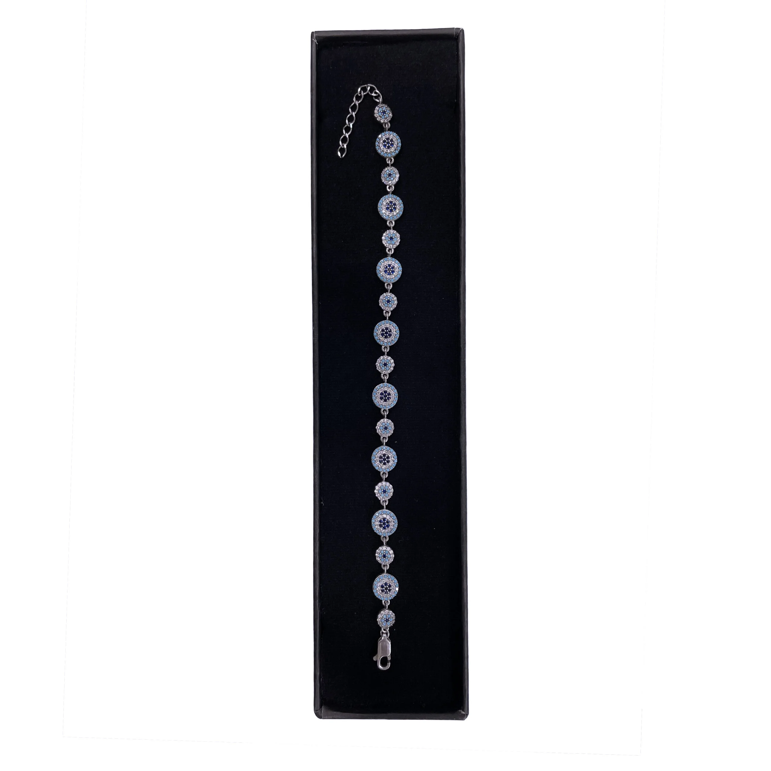 دستبند زنانه نقره طرح چشم نظر نگین گرد