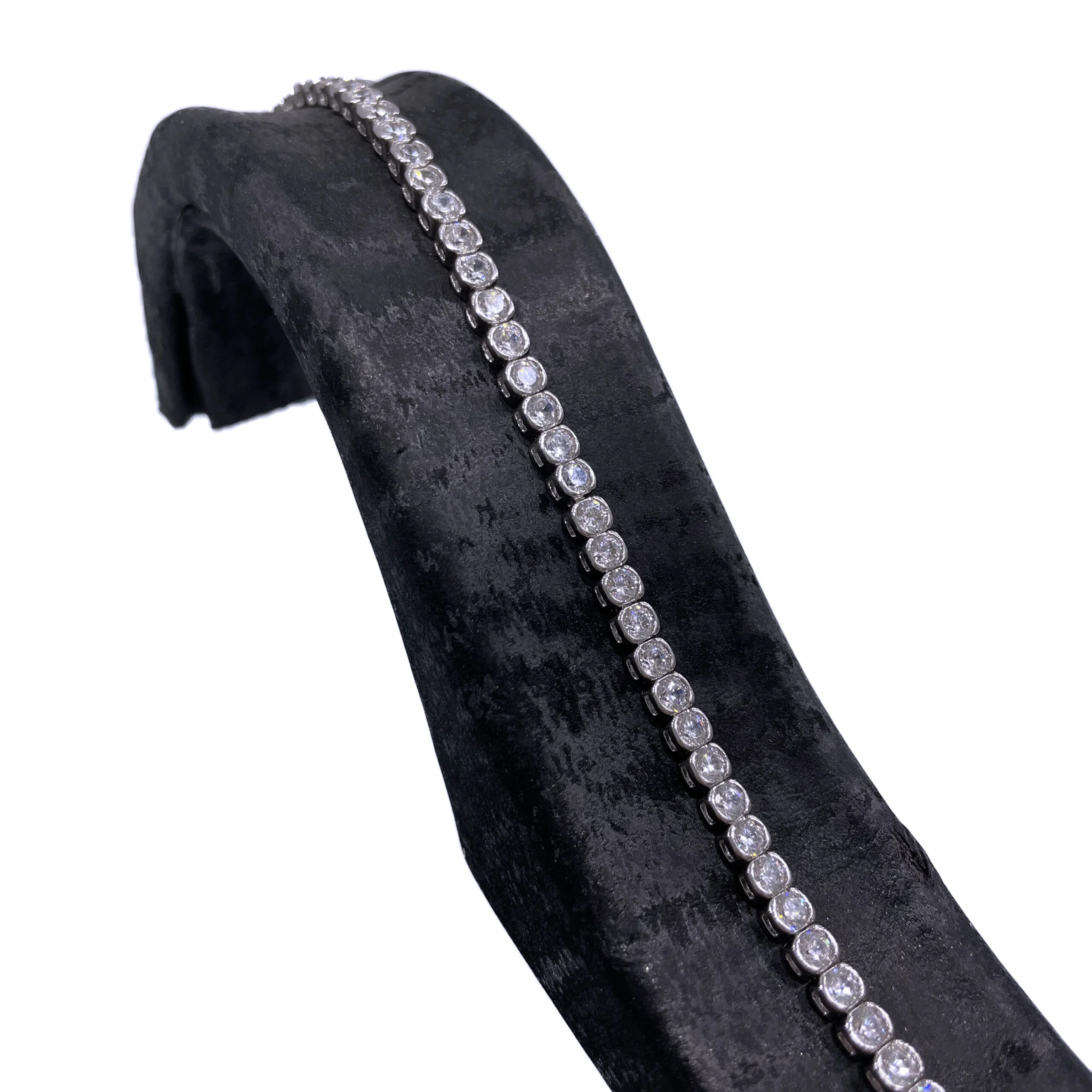 دستبند زنانه نقره طرح جواهر تنیسی نگین گرد