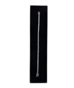 دستبند نقره زنانه طرح جواهر تنیسی نگین های تراش گرد بسیار زیبا و شیک میباشد و نگین به کار رفته در آن بسیار با کیفیت و از نوع اتمی سفید میباشد پوشش این دستبند پوشش آب رادیوم میباشد که باعث دیرتر کدر شدن و سیاه نشدن این دستبند در مدت طولانی میشود
