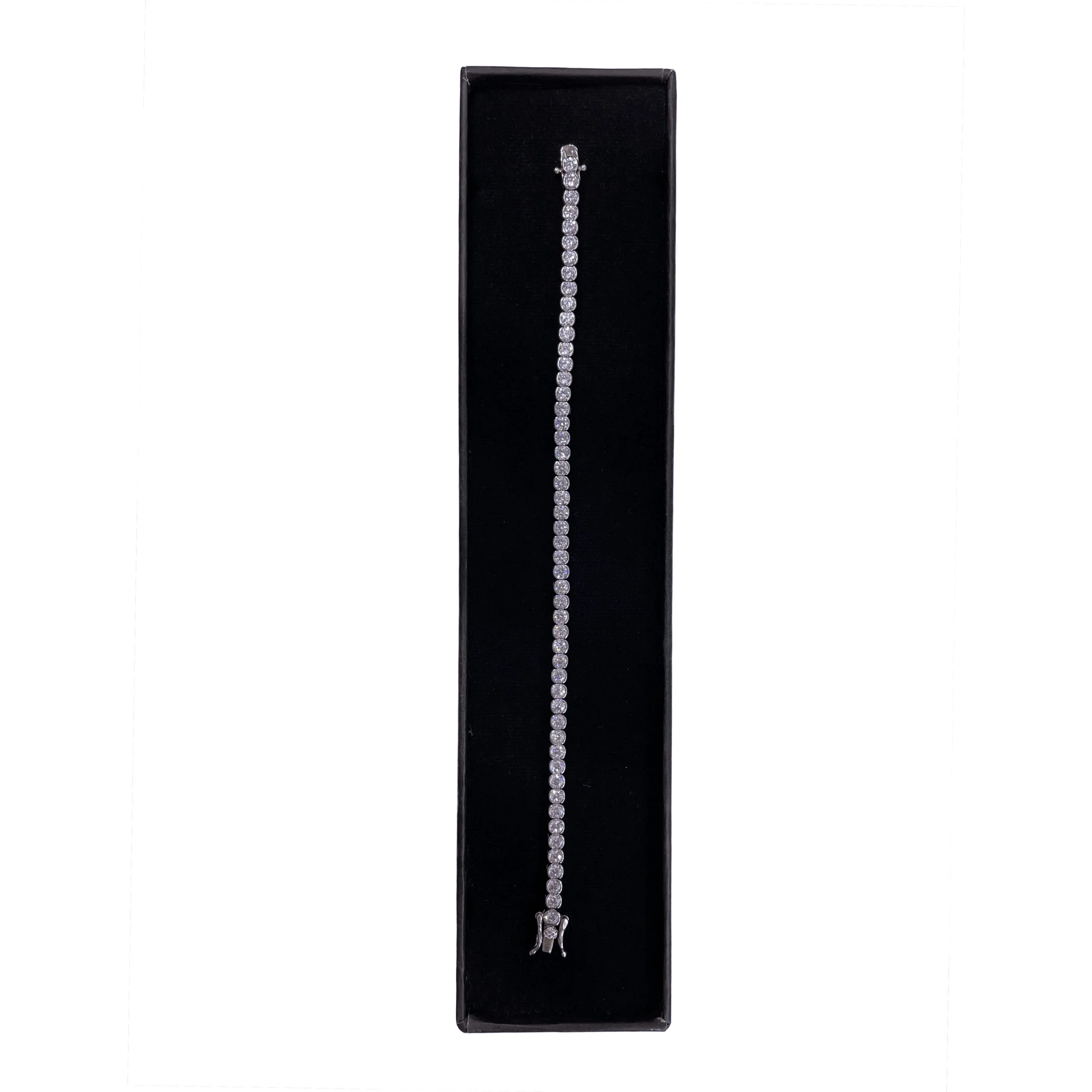 دستبند زنانه نقره طرح تنیسی جواهر نگین گرد با عیار ۹۲۵ آب رادیوم