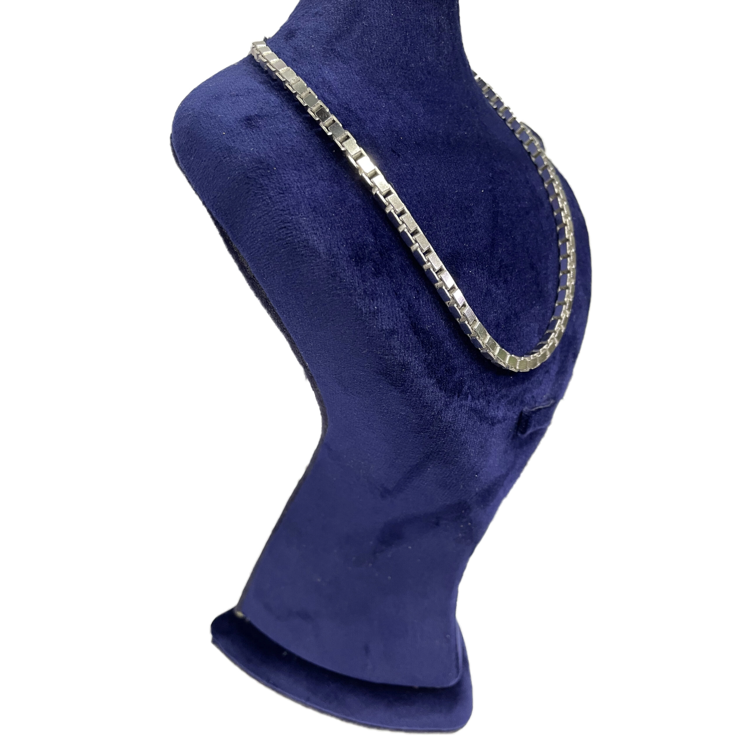 زنجیر نقره مردانه مدل ونیزی چهار تراش ( چهار گوش ) بسیار زیبا و شیک که بافت آب بسیار خاص و کمیاب میباشد بافت این زنجیر به صورتی میباشد که گردن را اذیت نمیکند و بسیار زیبا و شکیل در گردن مردانه شما جلوه بسیار زیبایی دارد این زنجیر زیبا پیشنهادی بسیار خاص برای کسانی که دنبال کارهای خاص و سخت پسند هستند بافت ونیزی که به صورت مربع مربع این زنجیر به گونهای است که بسیار نرم و انعطاف پذیر این زنجیر بسیار قابل مشاهده و جذاب میباشد قفل این زنجیر نیز به صورت طوطی فنر دار میباشد که به صورت معمول برای زنجیر مردانه مناسب و کیفیت ساخت آن بسیار بالا و دارای عیار 925 و آبکاری رادیوم ( آبکاری طلا سفید ) برای جلو گیری از مات و لک شدن زنجیر را دارا می باشد