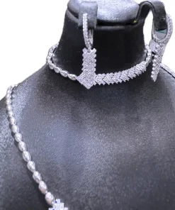 سرویس زنانه نقره طرح جواهرتنیسی tenisi که از مدل های برجسته و پرطرفدار می باشد دارای سنگ های اتمی ریز مخراجی شده و ضد ریزش بسیار زیبا و شیک که نگینهای اتمی ریز این سرویس همان نگین هایی است که در طلا استفاده میشود که به جای برلیان استفاده میشود که کیفیت نگینها به مرور زمان کم نمیشود و نه کدر میشود زنجیر به کار رفته در این سرویس مدل سرویس های طلا می باشد این سرویس دارای آب رادیوم و یا آب طلا سفید میباشد که مانع است کدری و یا تیرگی این سرویس میشود این کار بسیار با کیفیت و خاص میباشد و طراحی آن از طراحیهای برتر دنیا و کارهای ژورنالی هست این سرویس پیشنهاد ویژهای برای خانمها و یا دختر خانمهای سخت پسند و مشکل پسند میباشد که برای استفاده به جای طلا در روز مره و همچنین مجالس عروسی توصیه می شود جهت استعلام قیمت و خرید با پشتیباتی پیام و یا تماس حاصل نمایید