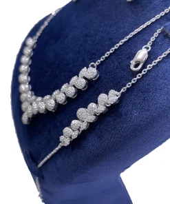 سرویس زنانه نقره طرح جواهر مدل گلین دارای سنگ های اتمی ریز بسیار زیبا و شیک که نگینهای اتمی ریز این سرویس همان نگین هایی است که در طلا استفاده میشود که به جای برلیان استفاده میشود که کیفیت نگینها به مرور زمان کم نمیشود و نه کدر میشود زنچیر به کار رفته در این سرویس مدل دیپلمات می باشد این سرویس دارای آب رادیوم و یا آب طلا سفید میباشد که مانع است کدری و یا تیرگی این سرویس میشود این کار بسیار با کیفیت و خاص میباشد و طراحی آن از طراحیهای برتر دنیا و کارهای ژورنالی هست این سرویس پیشنهاد ویژهای برای خانمها و یا دختر خانمهای سخت پسند و مشکل پسند میباشد