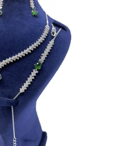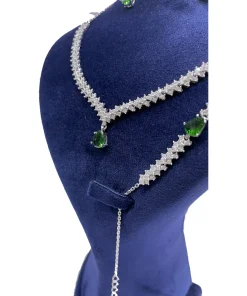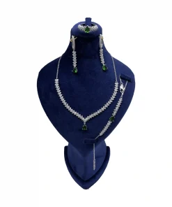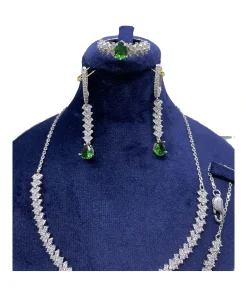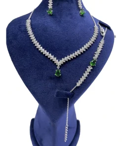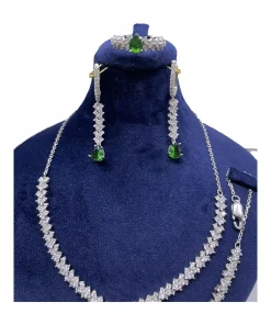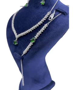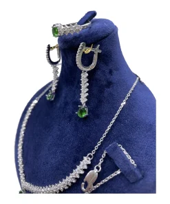 سرویس زنانه نقره طرح جواهر مدل yashil دارای سنگ های اتمی ریز و تخمه های تراش اشک سبز بسیار زیبا و شیک که نگینهای اتمی ریز این سرویس همان نگین هایی است که در طلا استفاده میشود که به جای برلیان استفاده میشود که کیفیت نگینها به مرور زمان کم نمیشود و نه کدر میشود زنجیر به کار رفته در این سرویس مدل دیپلمات می باشد این سرویس دارای آب رادیوم و یا آب طلا سفید میباشد که مانع است کدری و یا تیرگی این سرویس میشود این کار بسیار با کیفیت و خاص میباشد و طراحی آن از طراحیهای برتر دنیا و کارهای ژورنالی هست این سرویس پیشنهاد ویژهای برای خانمها و یا دختر خانمهای سخت پسند و مشکل پسند میباشد