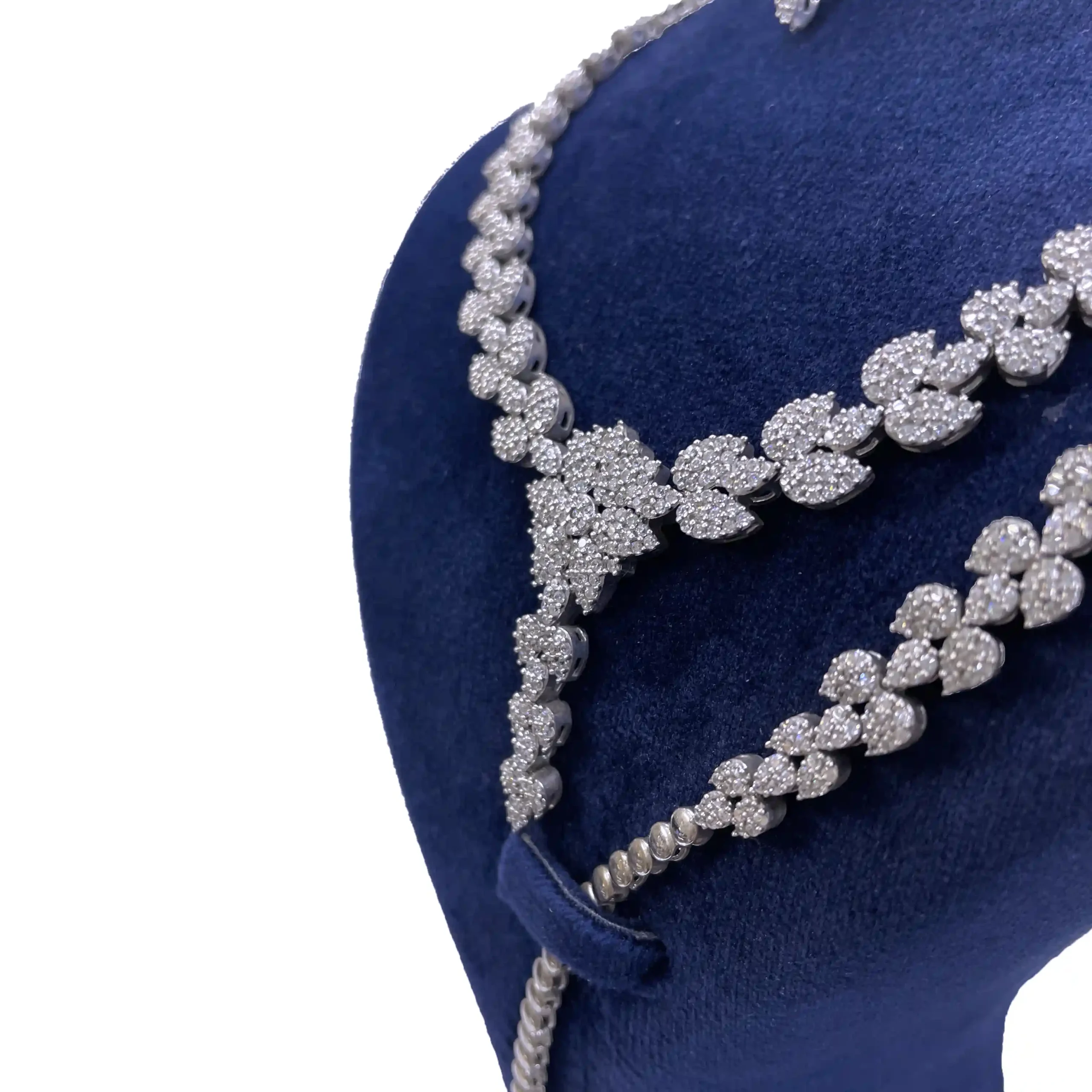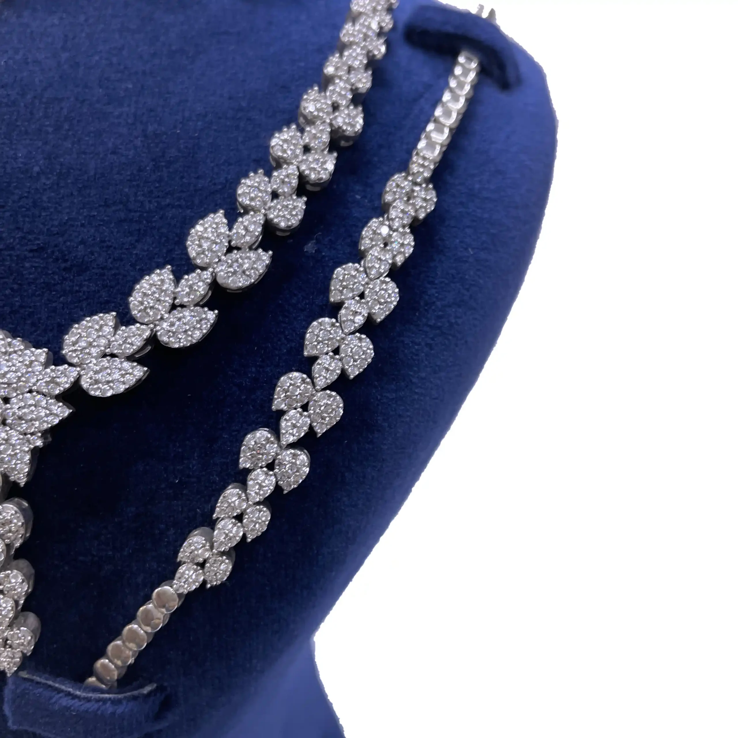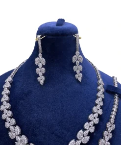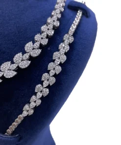 سرویس زنانه نقره طرح جواهر مدل azaliya دارای سنگ های اتمی ریز بسیار زیبا و شیک که نگینهای اتمی ریز این سرویس همان نگین هایی است که در طلا استفاده میشود که به جای برلیان استفاده میشود که کیفیت نگینها به مرور زمان کم نمیشود و نه کدر میشود این سرویس دارای آب رادیوم و یا آب طلا سفید میباشد که مانع است کدری و یا تیرگی این سرویس میشود این کار بسیار با کیفیت و خاص میباشد و طراحی آن از طراحیهای برتر دنیا و کارهای ژورنالی هست این سرویس پیشنهاد ویژهای برای خانمها و یا دختر خانمهای سخت پسند و مشکل پسند میباشد