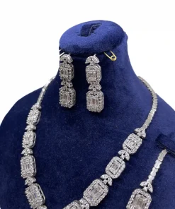 سرویس زنانه نقره مدل امرال کات دارای سنگ های اتمی ریز گرد و باگت بسیار زیبا و شیک که طرح جواهر می باشد نگینهای اتمی ریز این سرویس همان نگین هایی است که در طلا استفاده میشود که به جای برلیان استفاده میشود که کیفیت نگینها به مرور زمان کم نمیشود و نه کدر میشود این سرویس دارای آب رادیوم و یا آب طلا سفید میباشد که مانع است کدری و یا تیرگی این سرویس میشود این کار بسیار با کیفیت و خاص میباشد و طراحی آن از طراحیهای برتر دنیا و کارهای ژورنالی هست این سرویس پیشنهاد ویژهای برای خانمها و یا دختر خانمهای سخت پسند و مشکل پسند میباشد
