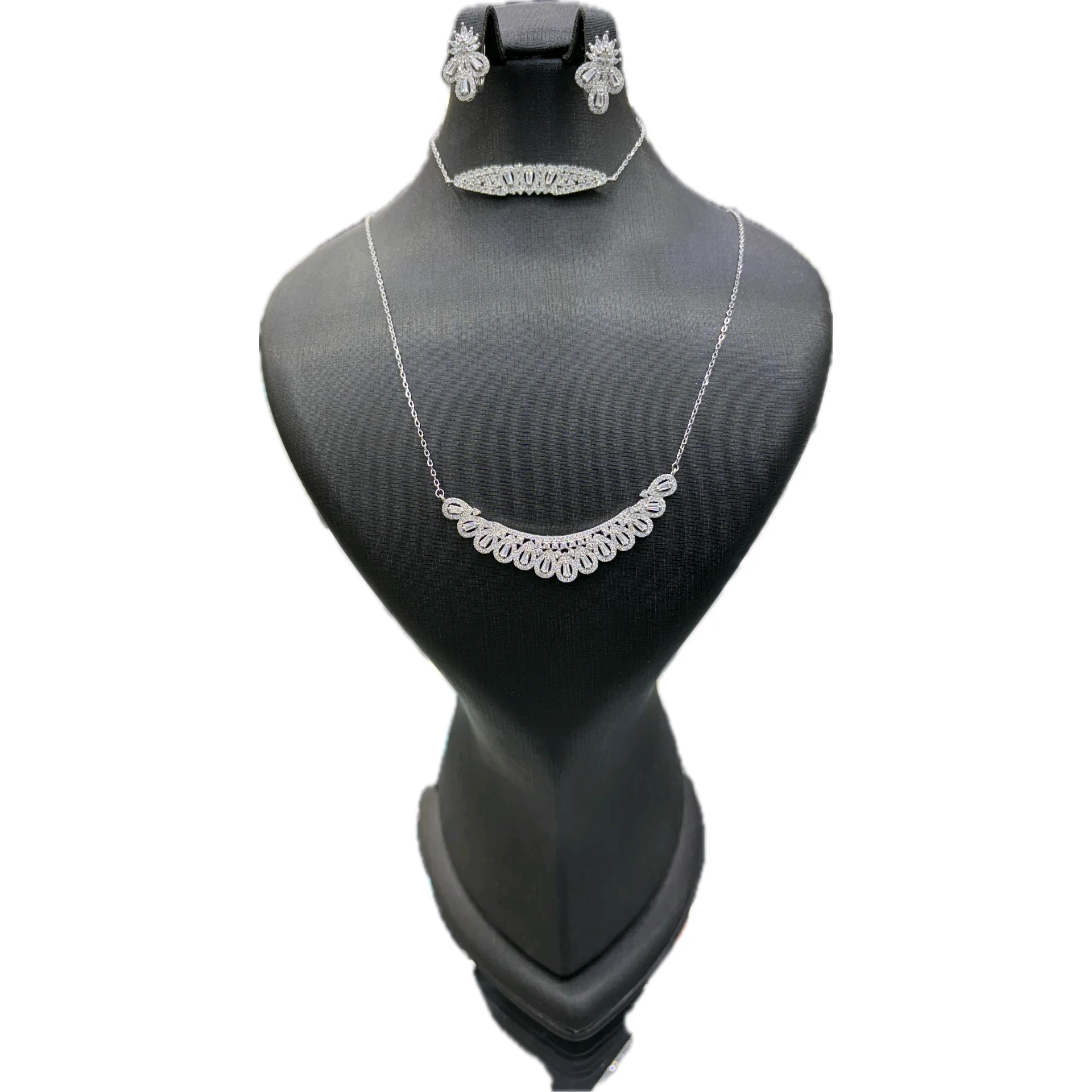 سرویس زنان نقره مدل پاپاراستا با عیار ۹۲۵ و آبکاری رادیوم هست که باعث رخشندگی و ثابت بودن رنگ آن میباشد زنجیر به کار رفته در این سرویس از نوع دیپلمات میباشد که از استحکام و زیبایی بینظیری برخوردار است این سرویس مناسب دختر خانمها و خانمهای جواد میباشد نگینهای اتمی به کار رفته در این سرویس از نوع باگت و گرد میباشد که هم نگینان بسیار کیفیت بالایی دارند و به مرور زمان رنگ آنها تغییر و یا کدر نمیشود