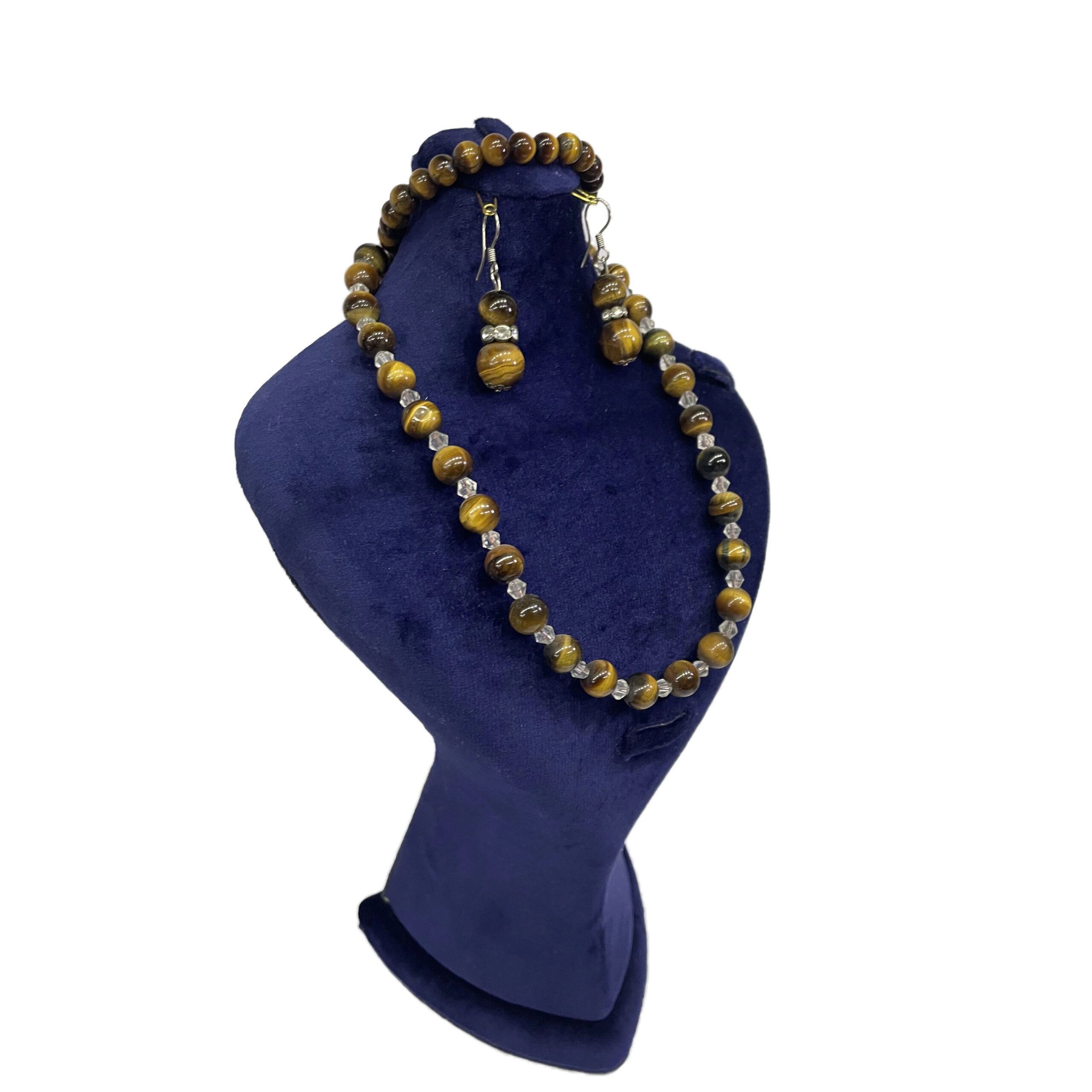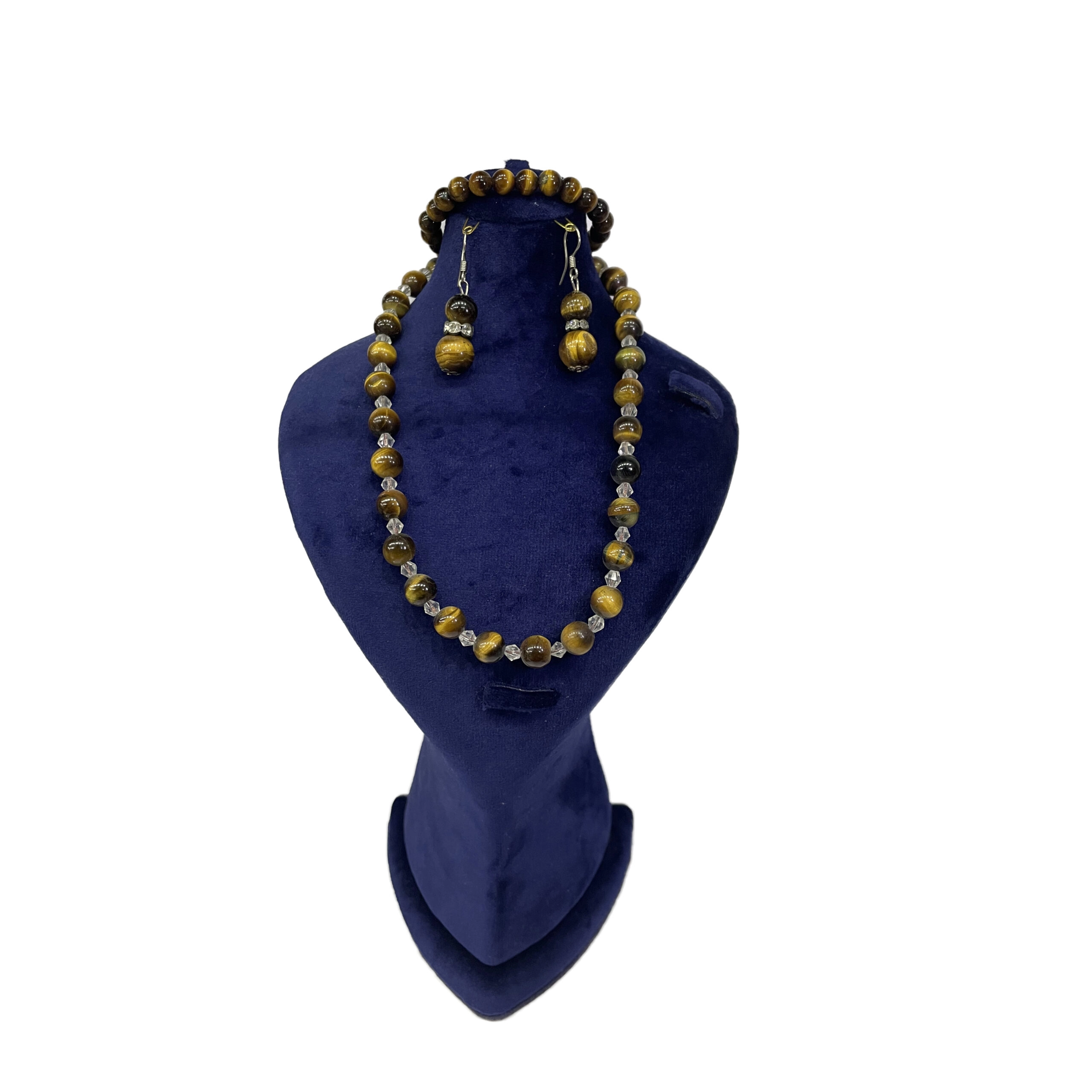 سرویس چشم ببر که بسیار زیبا و خاص میباشد که سنگ آن اصل میباشد با تراش گرد و رگههای سنگ در مهرههای آن کاملاً به چشم میخورد این سرویس شامل گردنبند گوشواره و دستبند است که مناسب افرادی که علاقه زیادی به سنگهای اصل و اورجینال دارند پیشنهاد میشود فلز به کار رفته در این سرویس استیل میباشد که باعث قیمت آن مناسب شده است