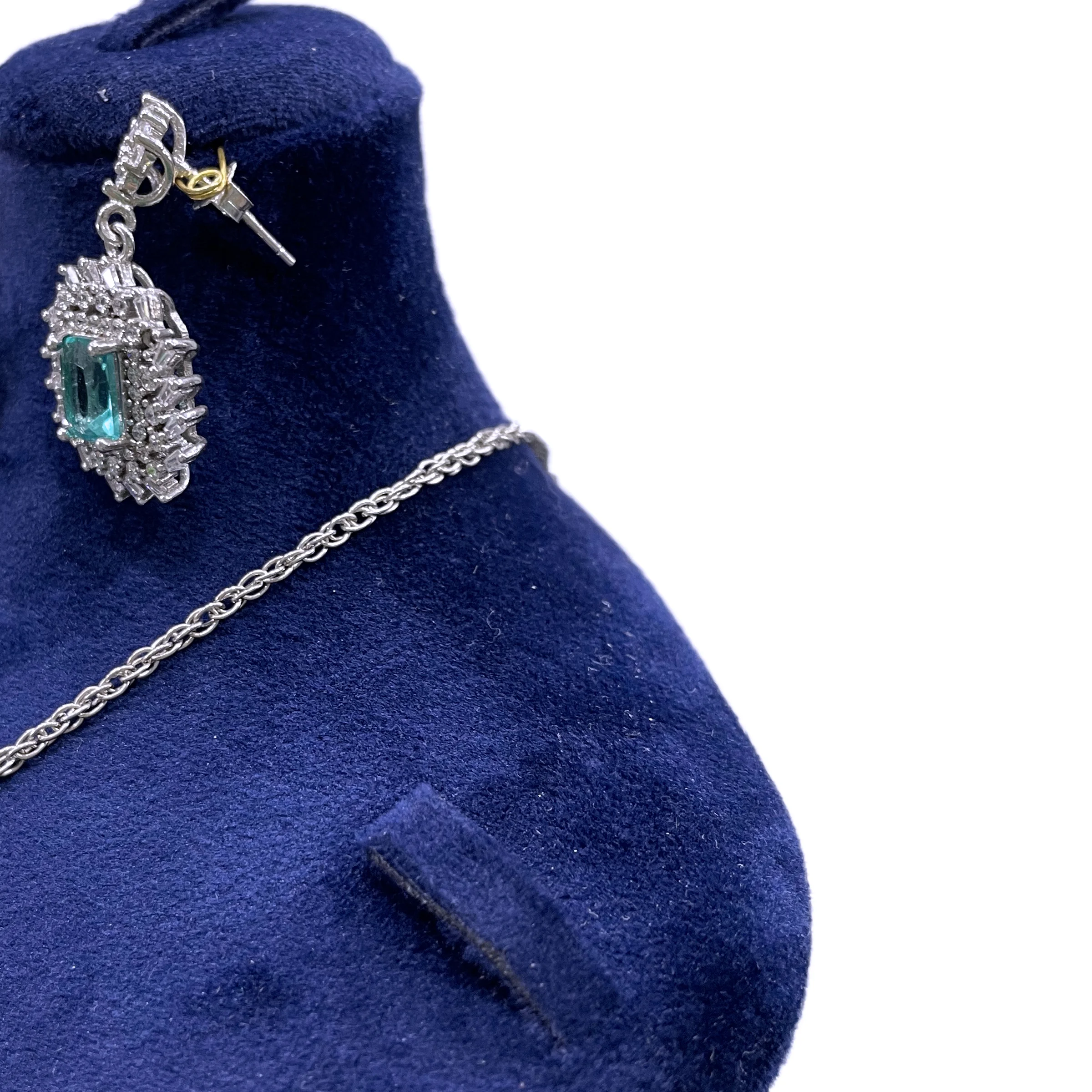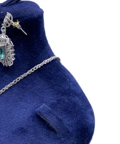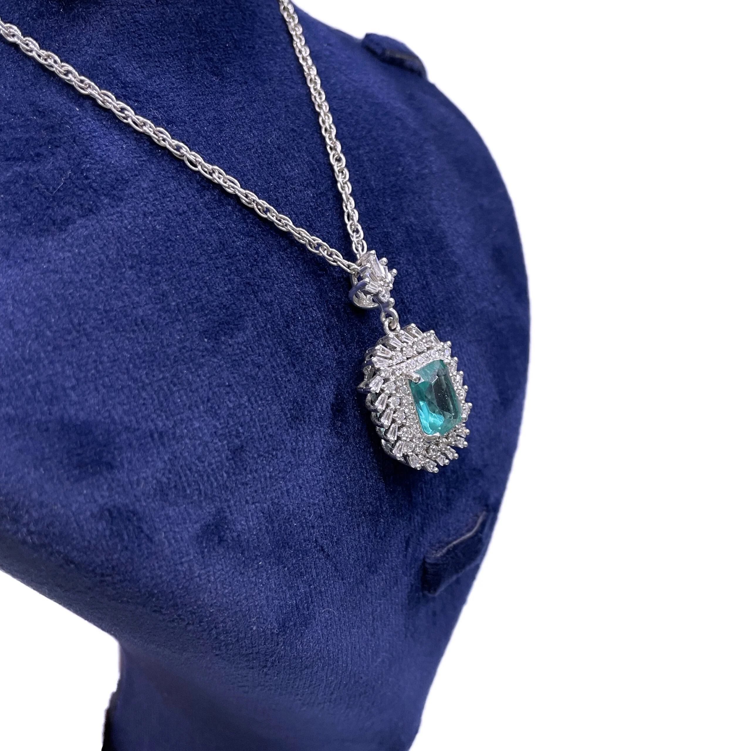 نیم ست زنانه نقره طرح جواهر مدل مینو آب رادیوم همراه با نگین های اتمی سفید و تخمه های سبز آبی ( طرح تورمالین )بدون زنجیر