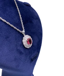 نیم ست زنانه نقره طرح جواهر مدل کیانا آب رادیوم همراه با نگین های اتمی سفید و تخمه های قرمز ( طرح یاقوت قرمز )بدون زنجیر