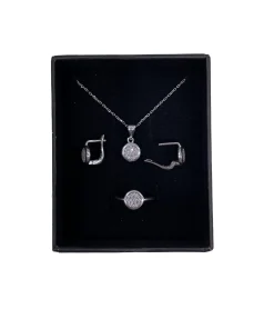 نیم ست زنانه نقره طرح گرد نگین دار پر نگین آب رادیوم همراه با نگین های اتمی سفید بدون زنجیر