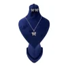 نیم ست زنانه نقره طرح قلب فانتزی آب رادیوم همراه با نگین های اتمی سفید بدون زنجیر