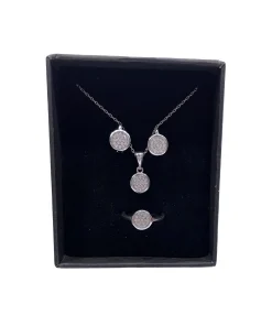 نیم ست زنانه نقره طرح ویوات آب رادیوم همراه با نگین های اتمی سفید بدون زنجیر