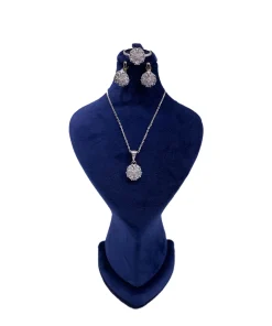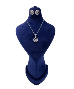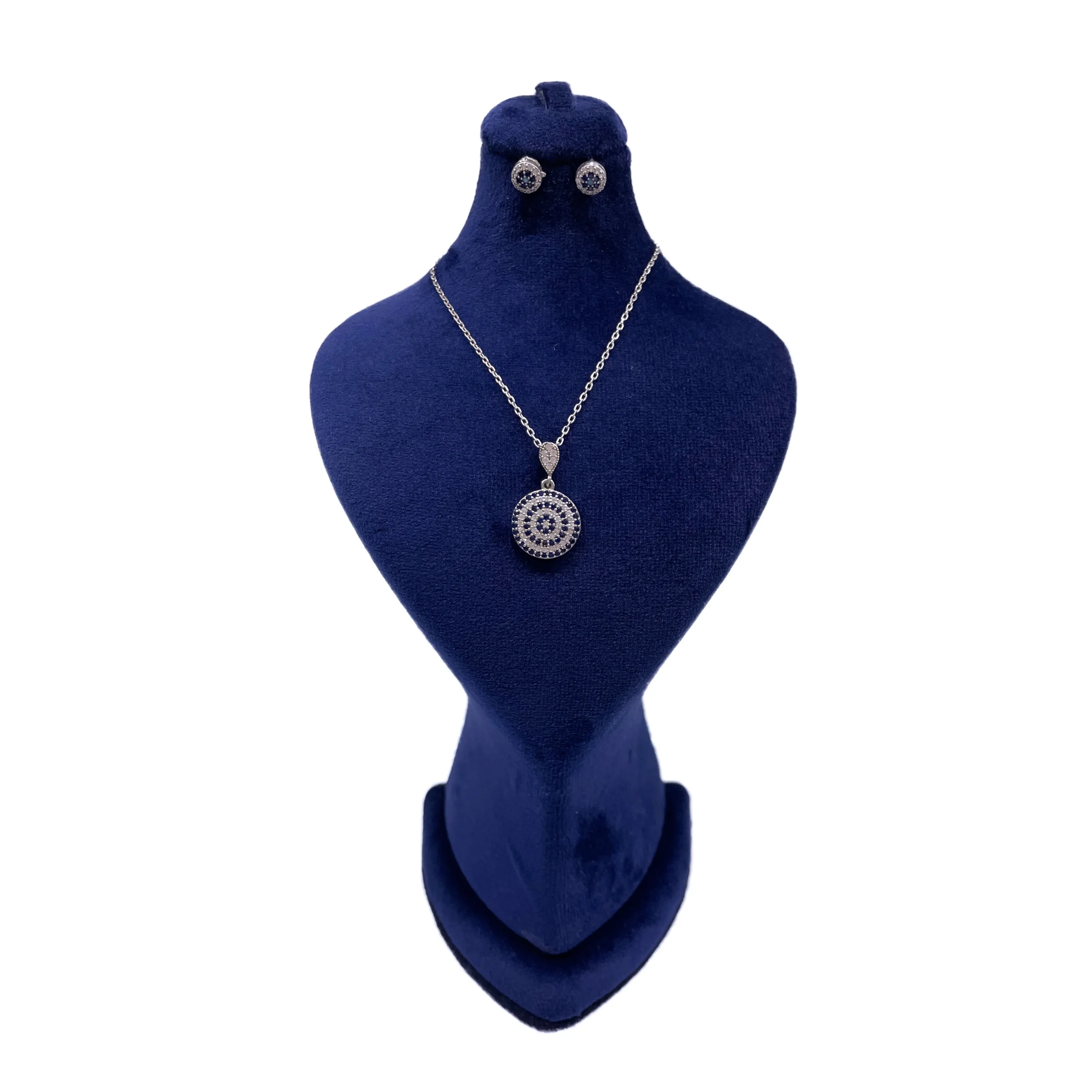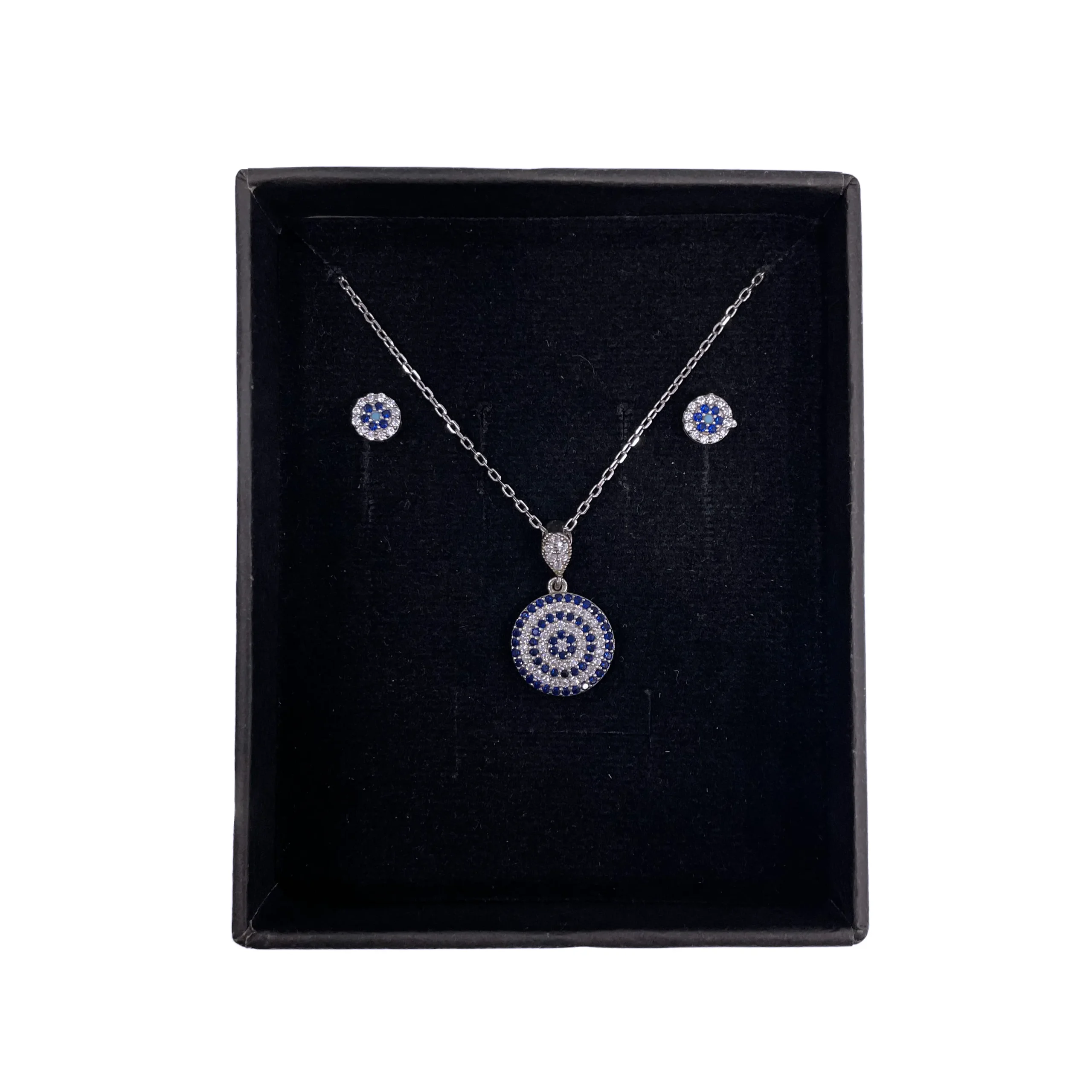 نیم ست زنانه نقره طرح چشم نظر درشت کبود دوبل جواهر آب رادیوم همراه با نگین های اتمی سفید و کبود طرح چشم نظر جواهری بدون زنجیر