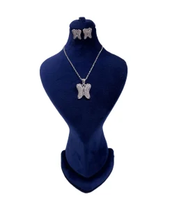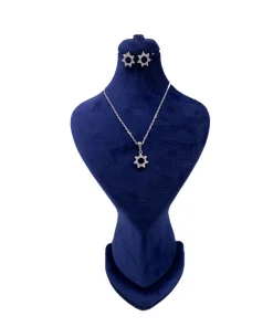 نیم ست زنانه نقره طرح چشم نظر درشت کبود شکوفه جواهر آب رادیوم همراه با نگین های اتمی سفید و کبود طرح چشم نظر جواهری بدون زنجیر