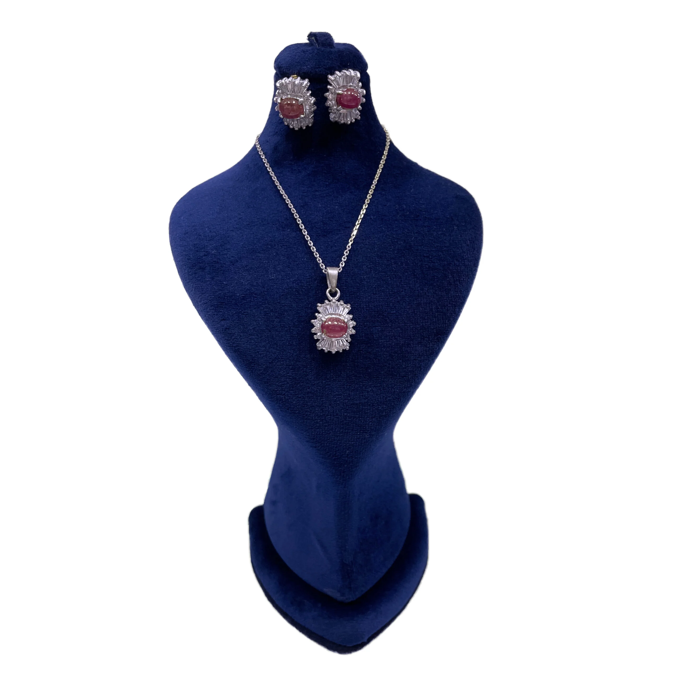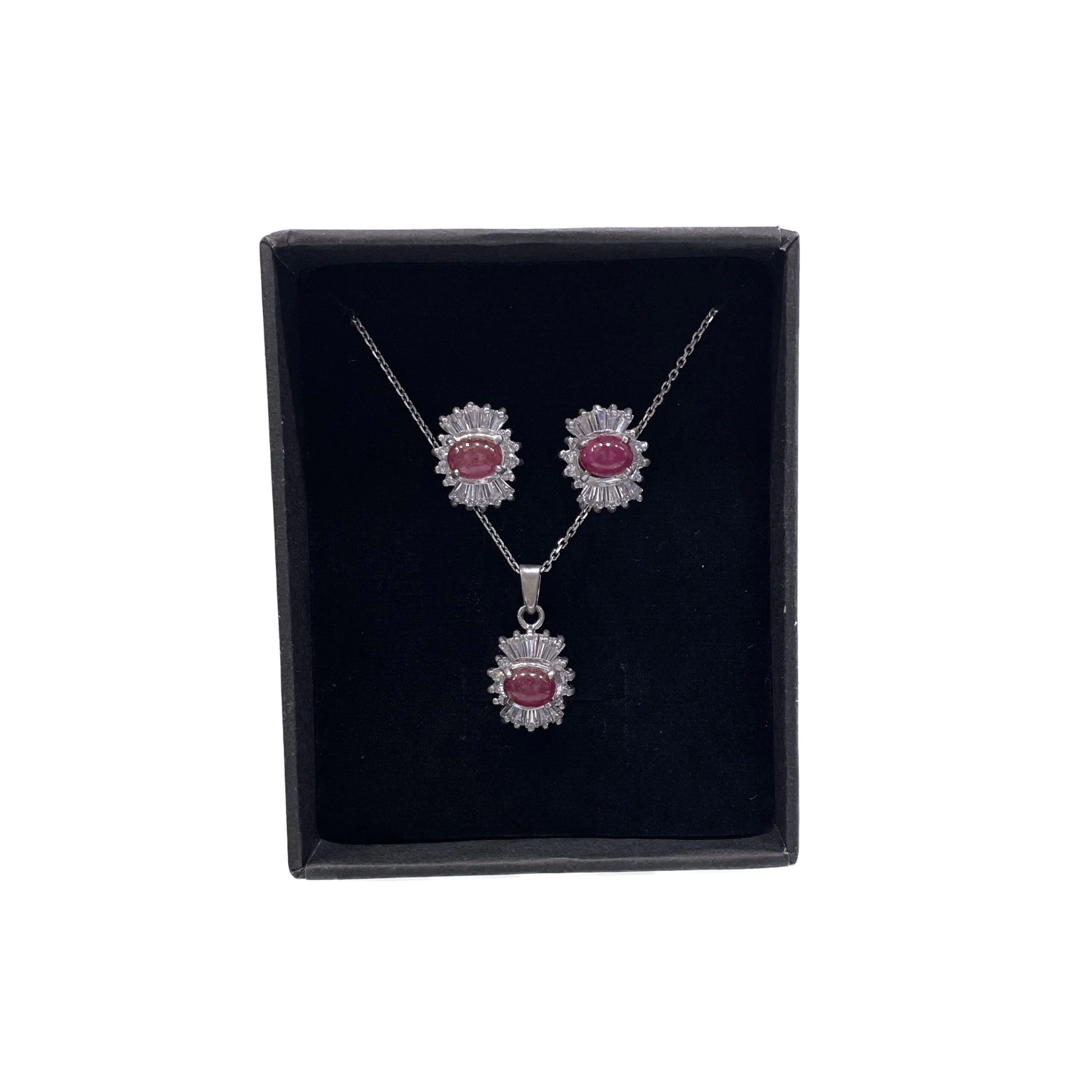 نیم ست سنگ یاقوت قرمز همراه با نقره بدون زنجیر
