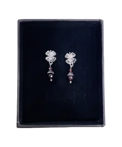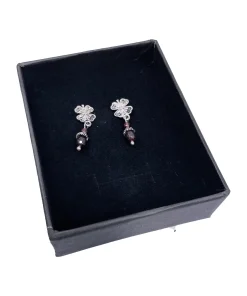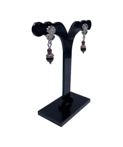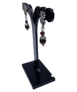 گوشواره زنانه نقره سیاه قلم با سنگ گارنت