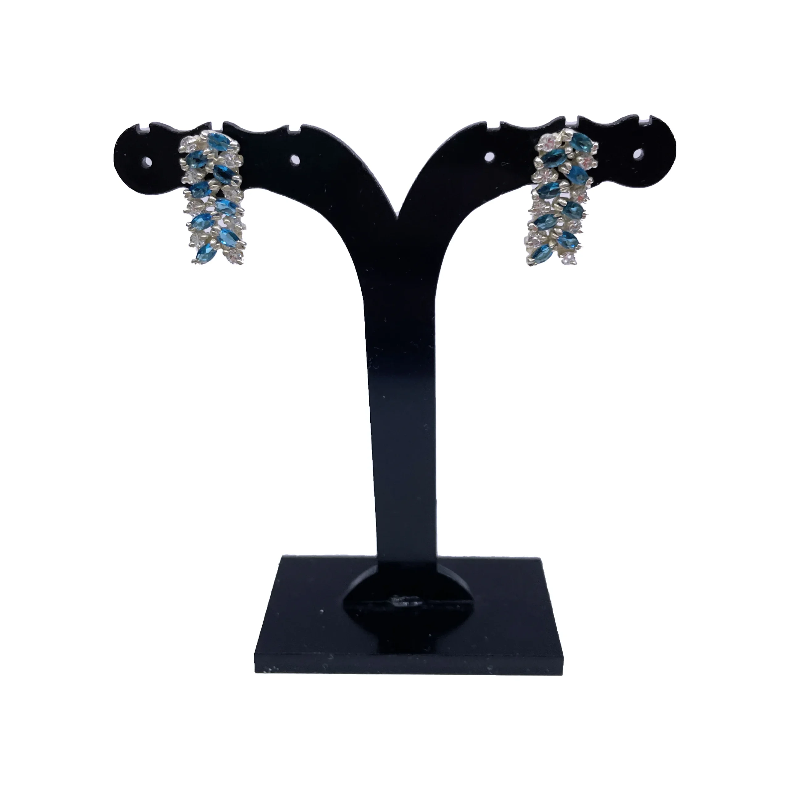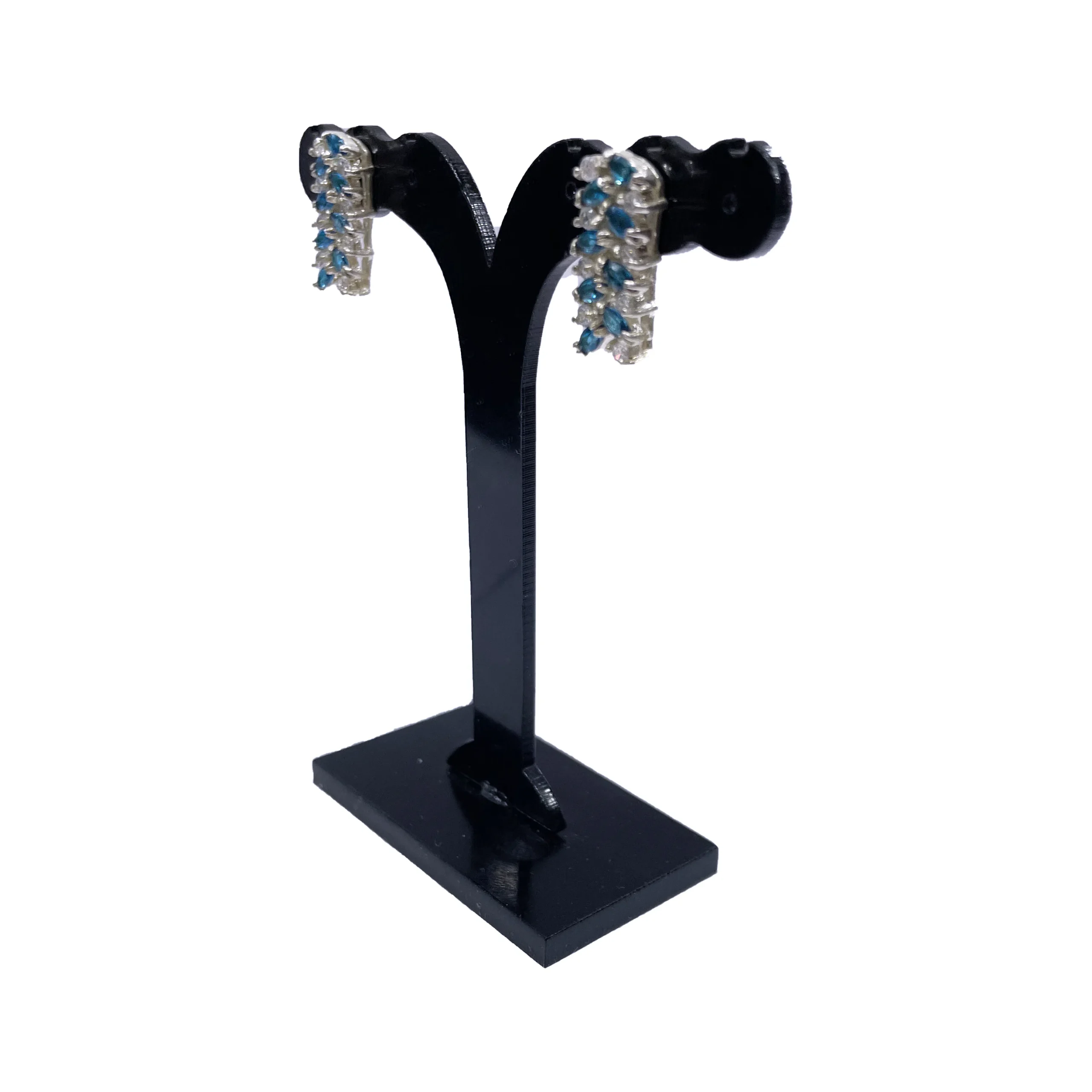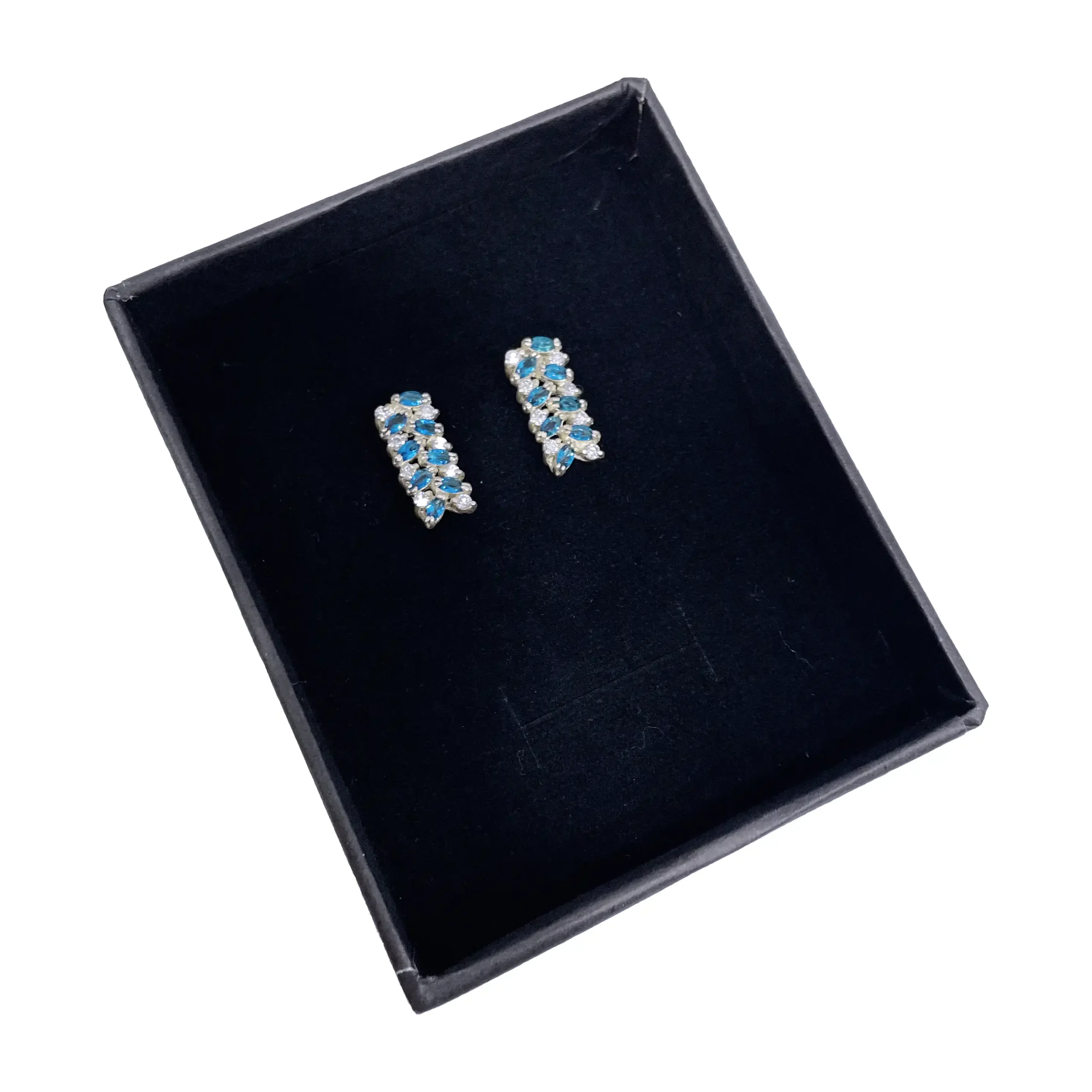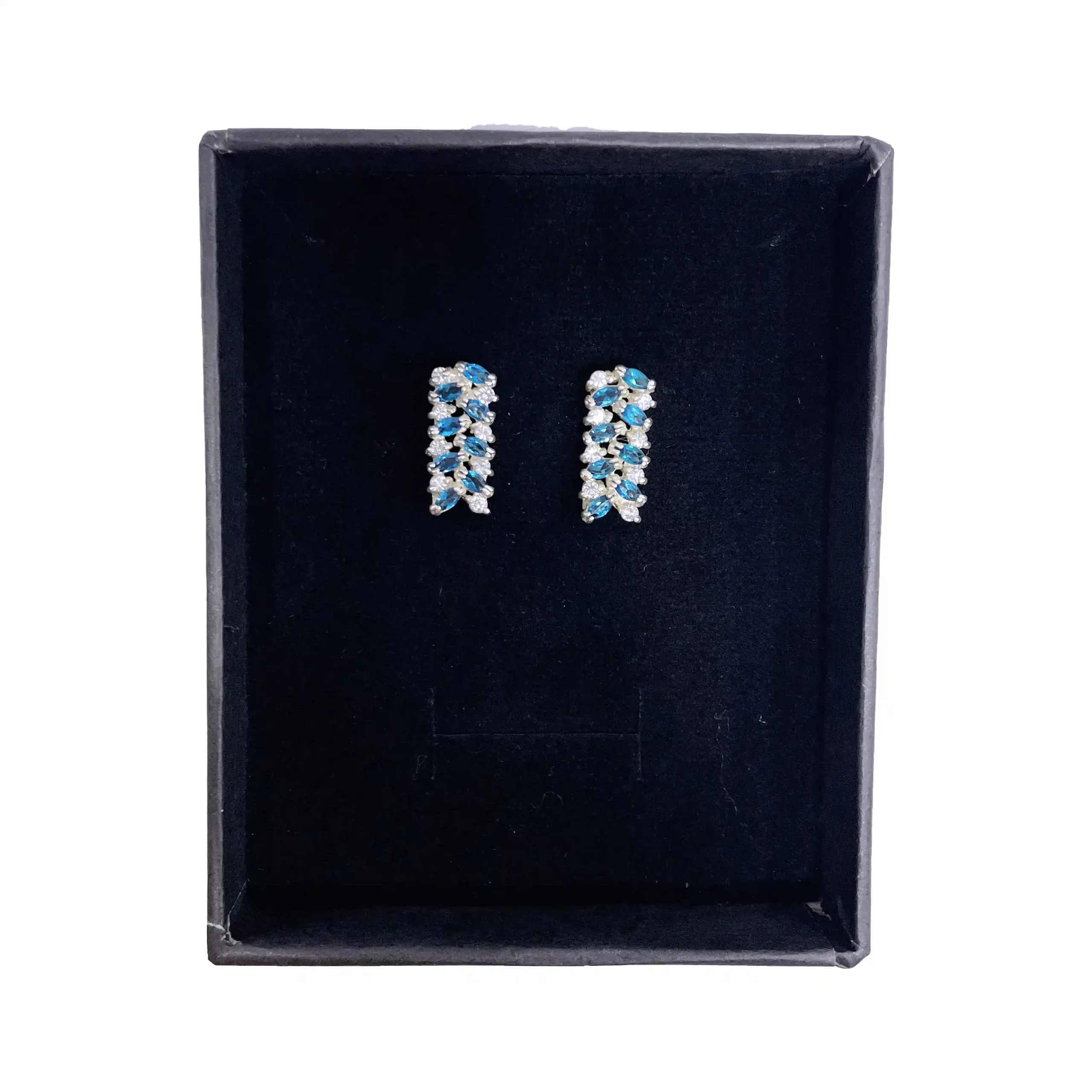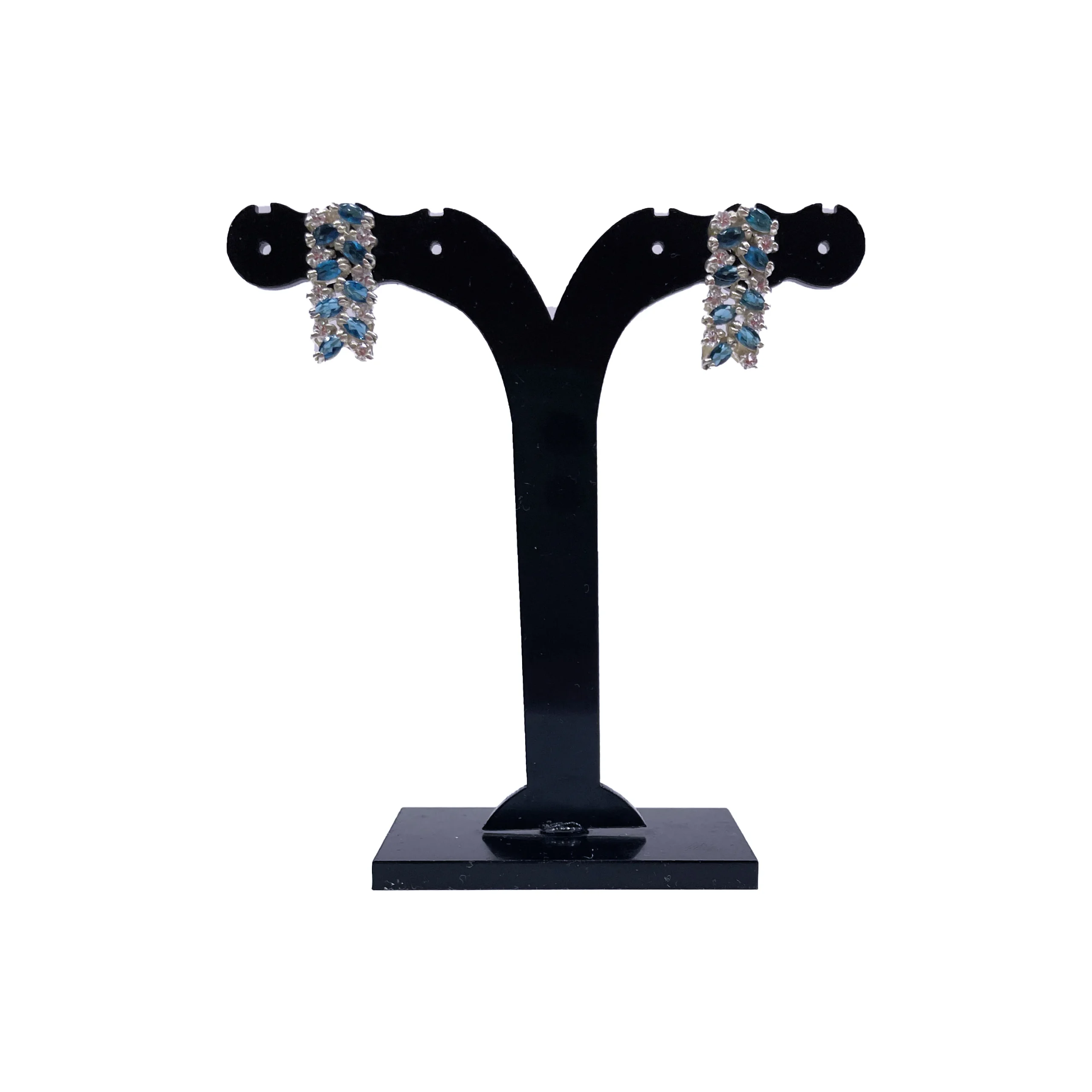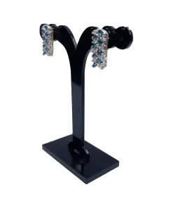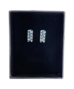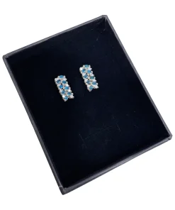 گوشواره زنانه نقره مدل آتنه با نگین اتمی سفید و آبی مجلسی و روزمره