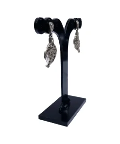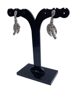 گوشواره نقره مارکازیت مدل قلا بسیار زیبا و شیک و مناسب استفاده روزمره و مجلسی میباشد کیفیت عالی عیار ۹۲۵ مدل سیاه قلم مارکازیت سیخ گوشواره آن به صورت میخی میباشد